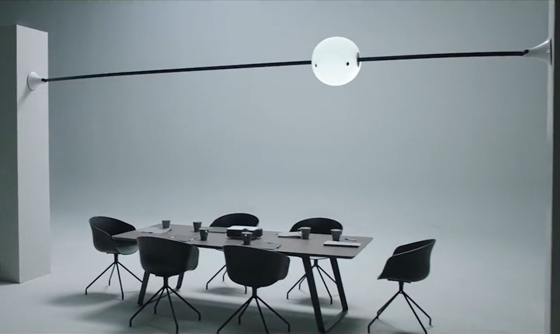 A gömb alakú tárgy elsősorban egy lámpa - de egy okos lámpa. Ahelyett, hogy a mennyezetről lógna, egy két fal közé szerelt sín mentén mozog, lehetővé téve, hogy a mennyezet közelében (vagy bárhol máshol) az egész helyiségben közlekedjen. Ez lehetővé teszi, hogy a lámpa szó szerint "kövesse" a lakót, és ott világítson, ahol éppen szükség van rá. A kanapén ül? Az izzó gömb lebeg fölötte. Felkelsz, hogy az íróasztalnál dolgozz? A lámpa a sín mentén mozog, és megvilágítja az új helyet.