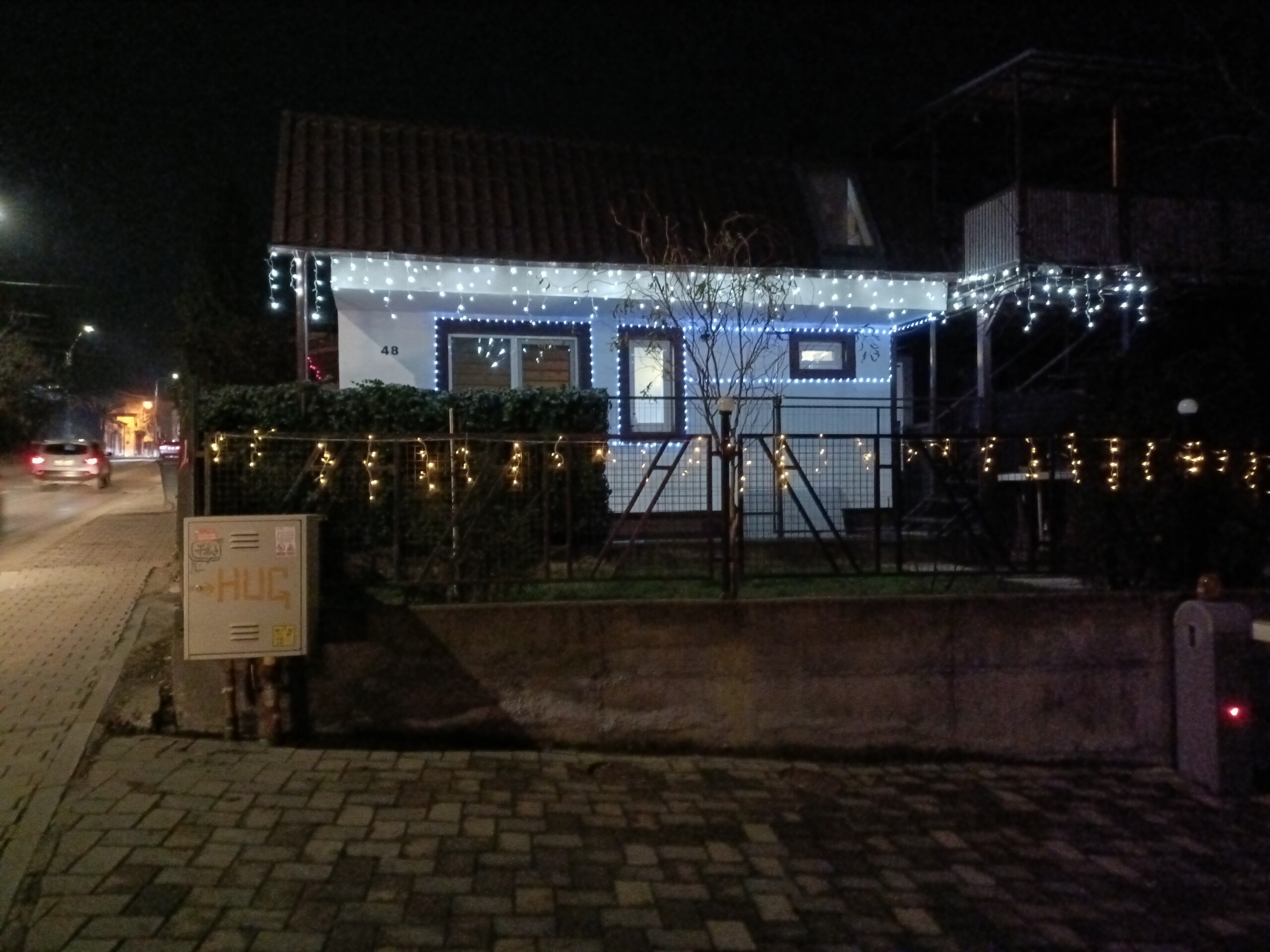 Bekapcsolt állapotban a Fire 7 Pro hátlapján található 2 LED-modul meglehetősen világos, hidegfehér fényt bocsát ki. Fényerejük (alap 20 %-tól a teljes 100 %-ig), valamint viselkedésük (normál üzemmód; gyors egymásutánban villogás; nemzetközi SOS jel továbbítása) vezérlésére van egy dedikált alkalmazás előre telepítve, de a gyakorlatban egyszerűbb helyette a Android gyorselérési menüt használni, amely a Doogee által Camping Lightnak nevezett fényeket egyenletes, 50 % körüli fényerővel működteti. Ez elég fényes ahhoz, hogy a felhasználó egy igazán kis szobában, gondoljunk csak 7 vagy 8 négyzetméteres kis helyiségre, normális élet dolgait végezze. A fényerő még 100 %-nál is éppen csak elegendő a kisebb helyiségek megfelelő megvilágításához; legjobb esetben is 11 vagy 12 négyzetméteres. Egy tisztességes 230 V-os LED izzó pontosan ugyanilyen fényesnek tűnik.