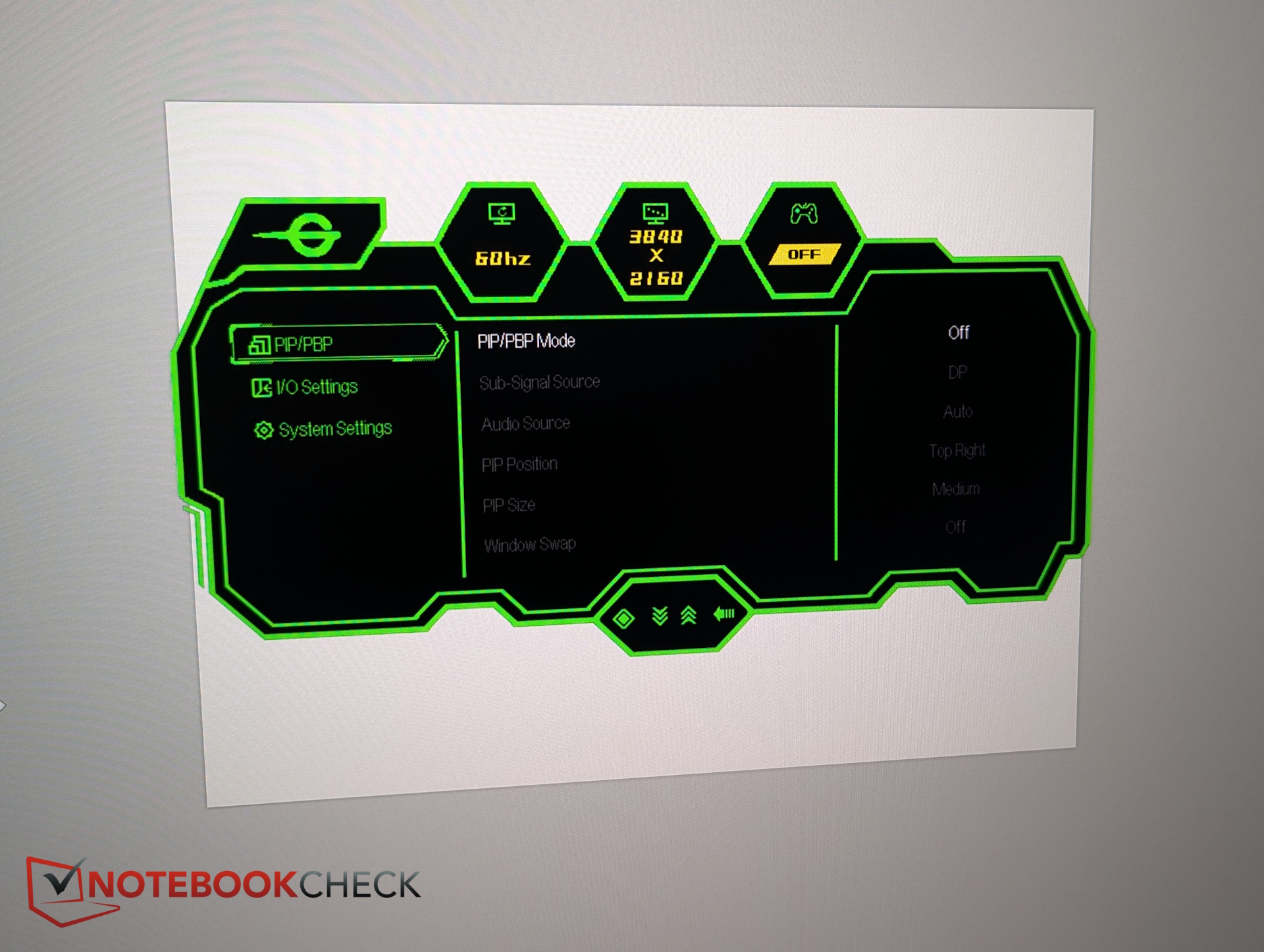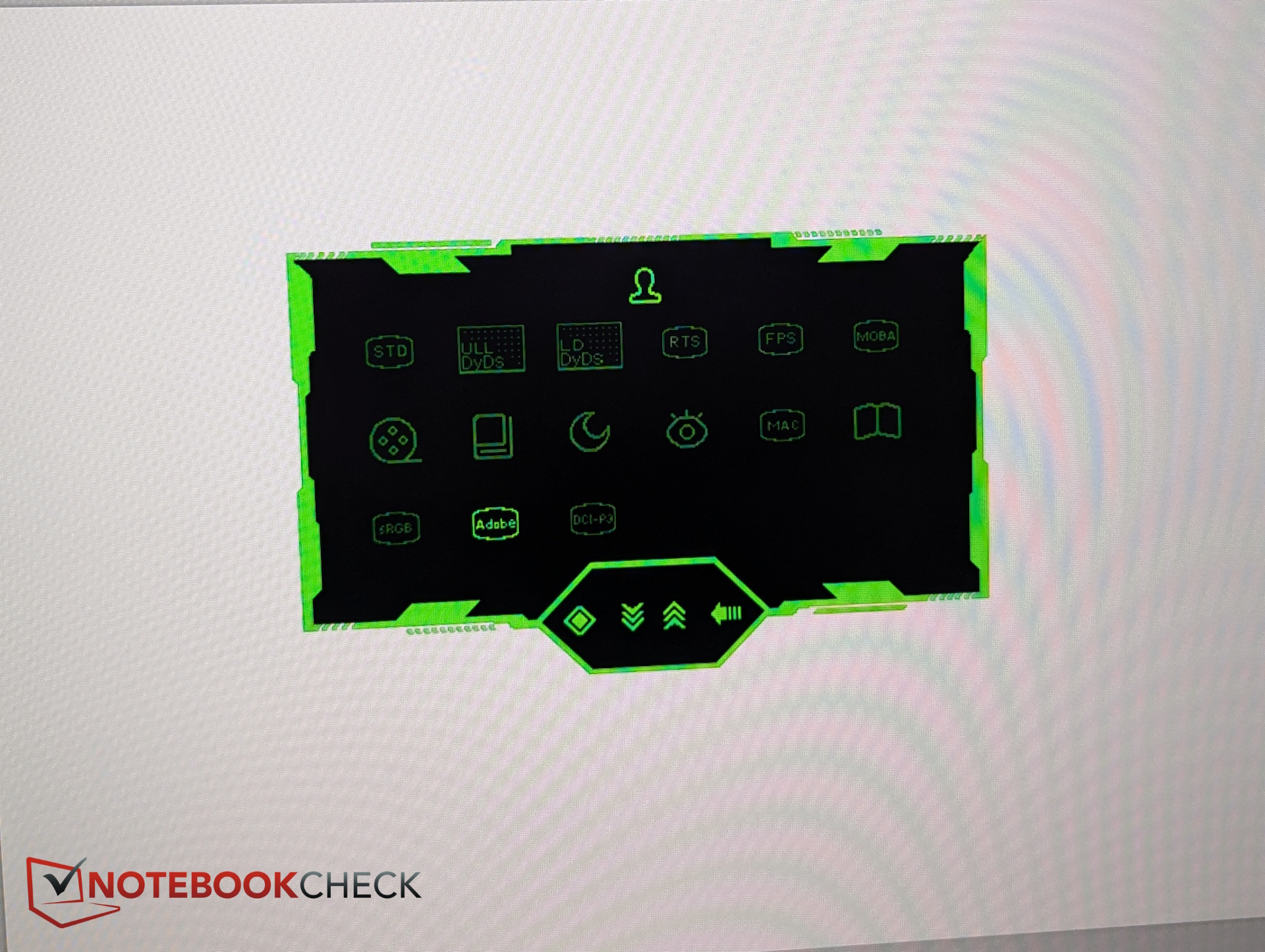 Az OSD 15 képbeállítást tartalmaz. Ezek olyan színtereket fednek le, mint az sRGB, DCI-P3 és AdobeRGB, valamint olyan játék-specifikus módokat, mint például: