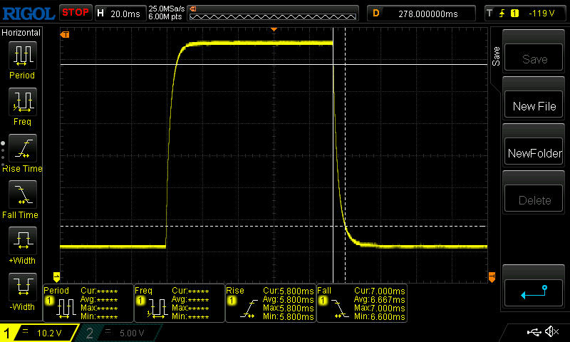 | 5.6 ms ... emelkedés és süllyedés ↘ kombinálva | ↗ 1.8 ms emelkedés | |