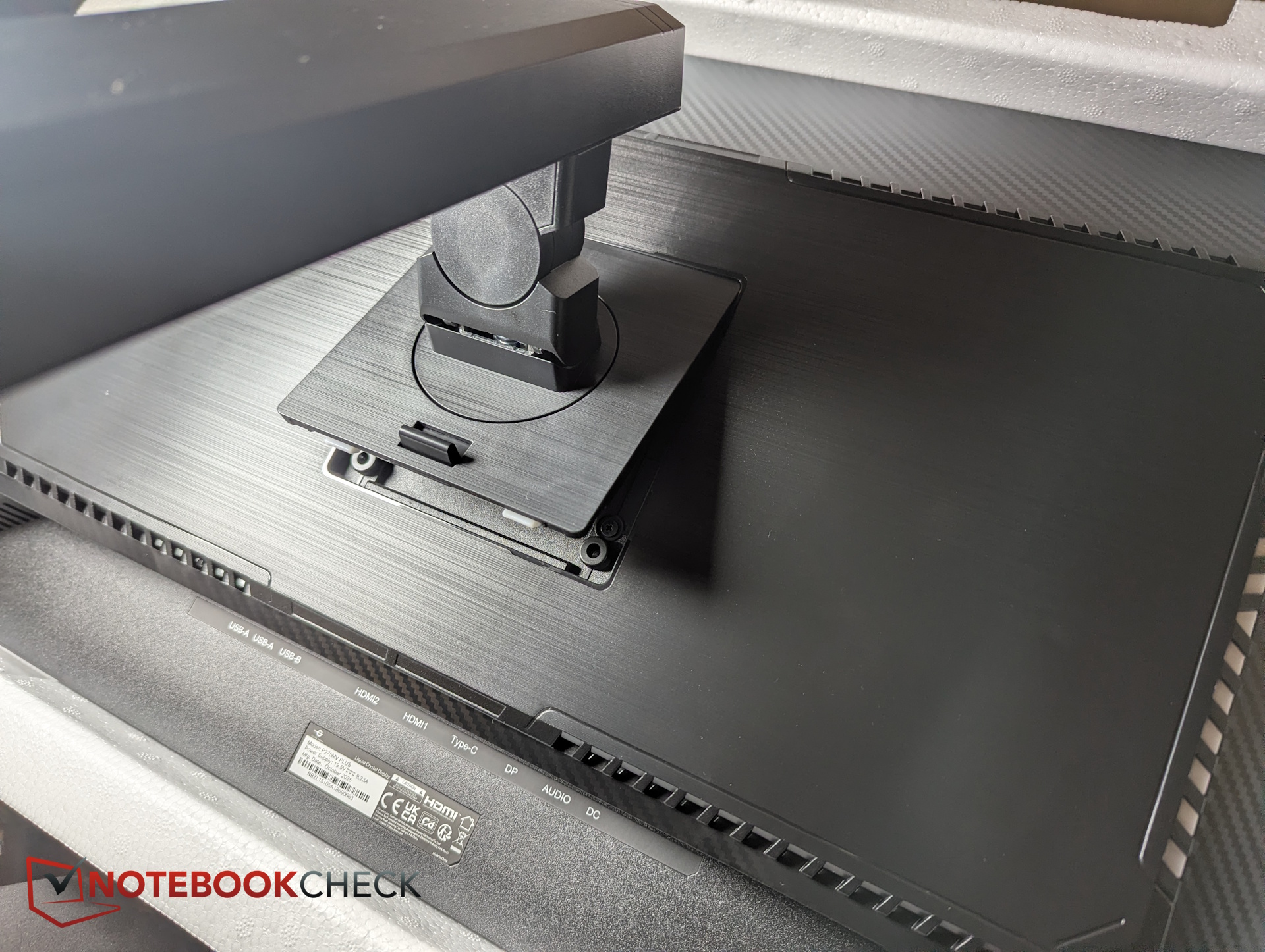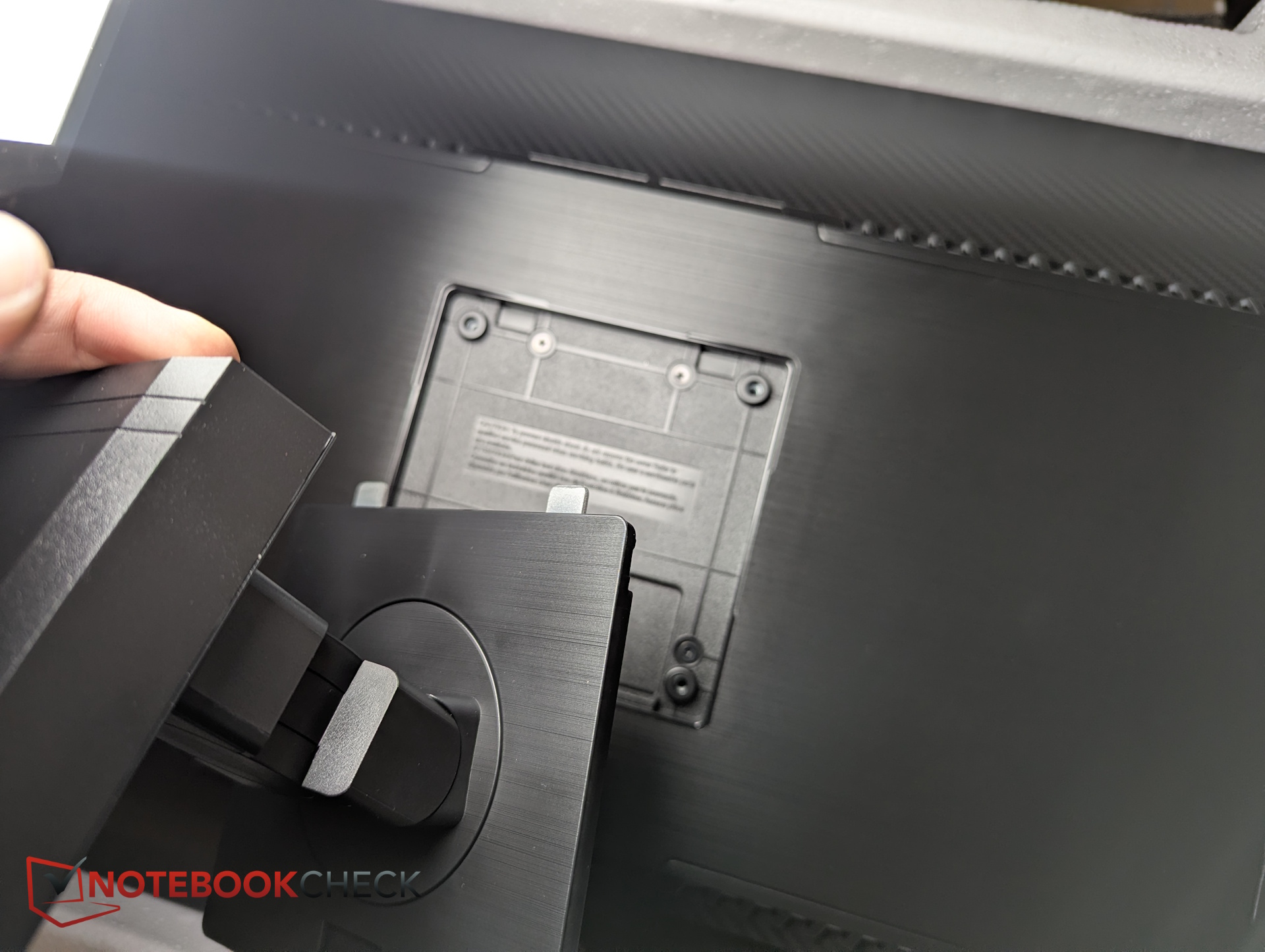 Az összeszerelés egyszerű. Az állvány közvetlenül a kijelző hátoldalán található VESA tartóba kattan - csavarok nélkül.