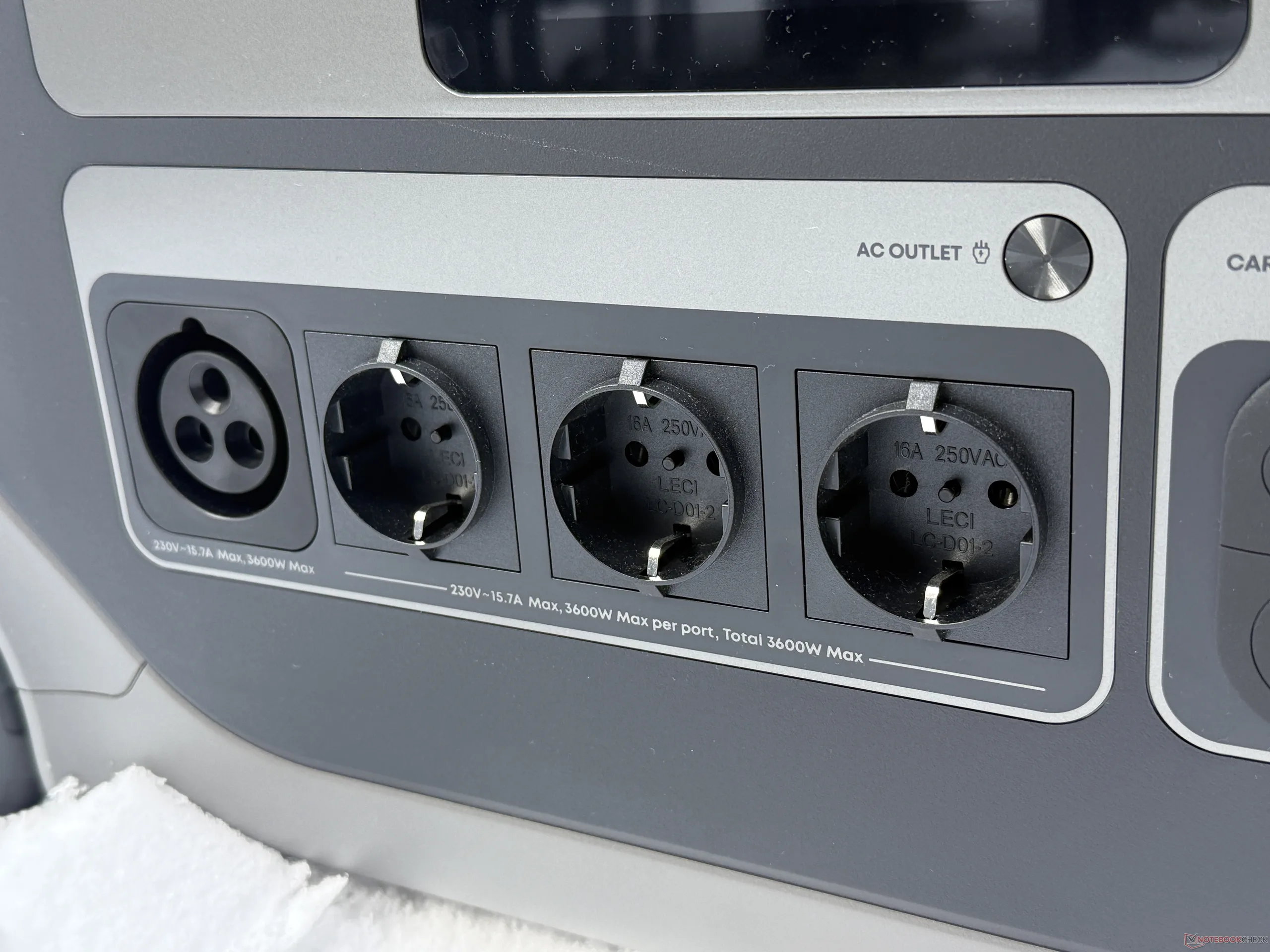 A bemeneti oldalon az Anker Solix F3000 még több lehetőséget kínál, mint kisebb C-sorozatú testvérei. IEC dugó helyett saját csatlakozóval rendelkezik, amely akár 2 990 W-ot is képes szolgáltatni egy konnektorba, és maximum 3 600 W-ot egy EV töltőállomáson keresztül.