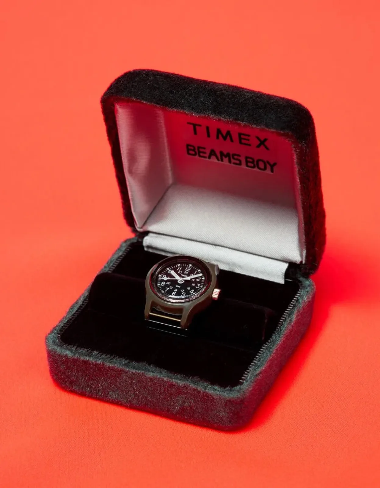 Ennek oka, hogy rozsdamentes acélból készült, és az egyes elemeket egy rugalmas szalag köti össze. Ennek köszönhetően a Ring Watch olyan ujjakra is alkalmas, amelyeken általában 9-15 amerikai gyűrűméretű gyűrűt viselnek. A karperec egy láncszemét azonban nem lehet eltávolítani, hogy még kisebb ujjakra is alkalmassá tegye. A Timex x Beams Boy Ring Watch áprilisban jelenik meg a japán Harajukuban található első Beams üzlet 50. évfordulója alkalmából.