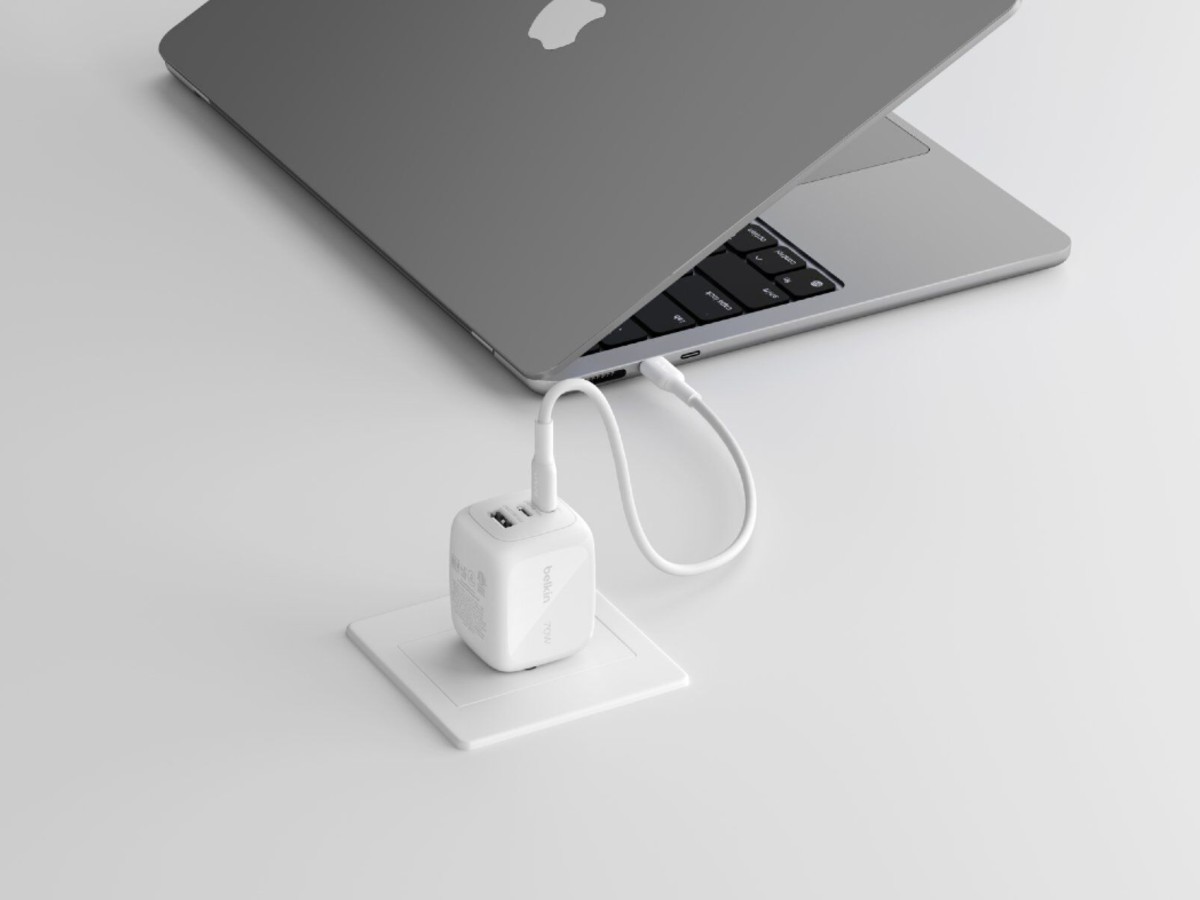 Mint említettük, a Belkin adapter a két USB-C porton és a további USB-A porton keresztül 70W teljesítmény leadására képes, hasonlóan a Anker 70W-os 3 portos töltőhöz. Mindegyik USB-C port önmagában képes a teljes 70W teljesítmény leadására, a teljesítmény megosztása 45W/25W vagy 45W/22,5W, ha két eszköz van csatlakoztatva, és 45W/12W/12W, ha mindhárom port használatban van. A gyakorlatban ez azt jelenti, hogy egy olyan notebookot, mint a 15 hüvelykes M4 MacBook Air miközben két másik eszközt is tölthetünk.