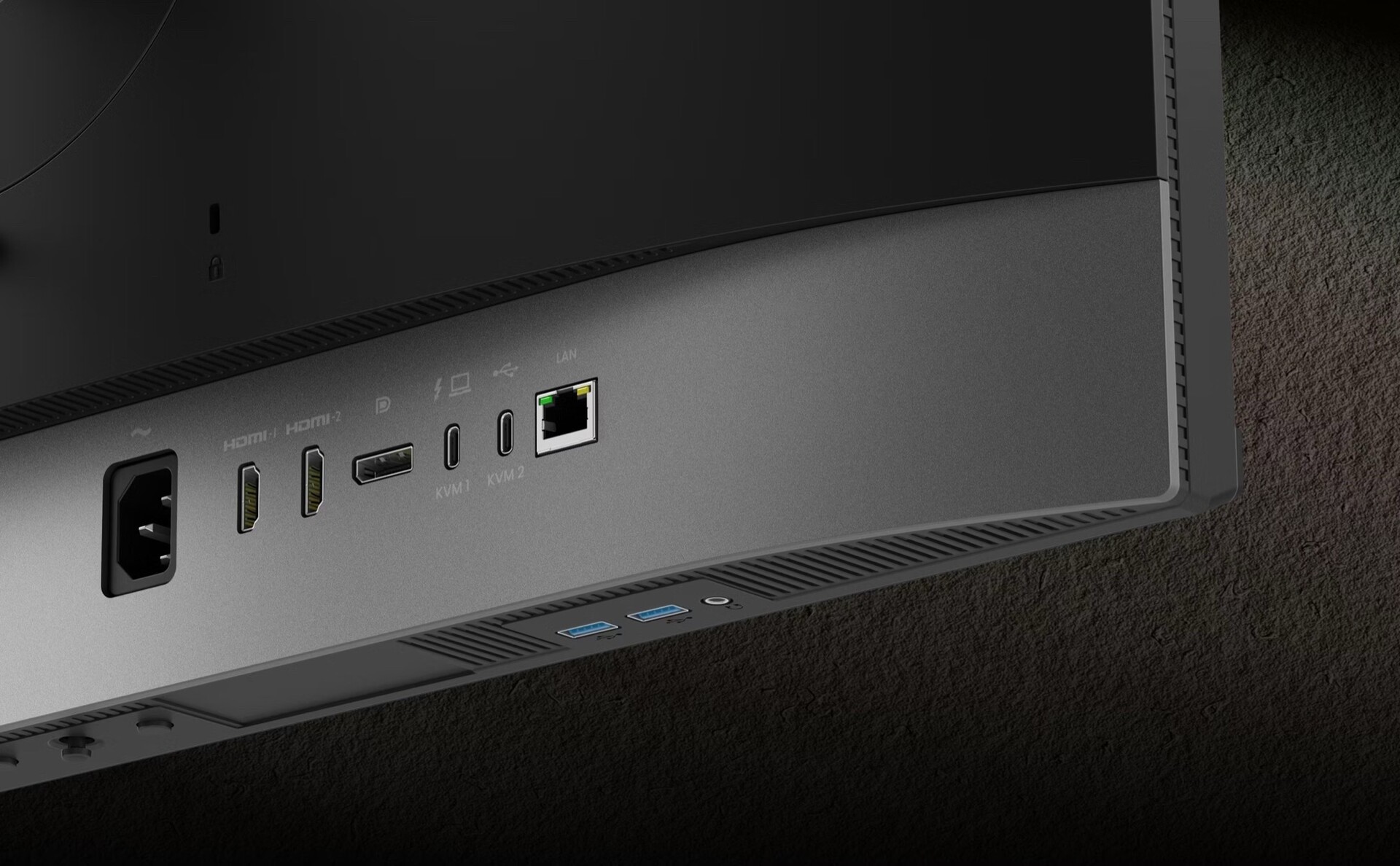 A monitor támogatja a Thunderbolt 4 szabványt, és 96 wattal képes tölteni az USB-C-n keresztül csatlakoztatott laptopokat. Egy integrált KVM-kapcsoló, egy kétportos USB-hub, két HDMI-port, DisplayPort, Ethernet és egy állítható magasságú állvány egészíti ki a funkciókat.