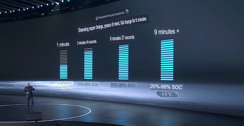 Több újításnak köszönhetően, mint például a hűtési hatékonyság 20%-os növelése, a Shenxing 3 LFP akkumulátor egy perc alatt töltődik fel 10%-ról 35%-ra, 3 perc 44 másodperc alatt éri el a 80%-ot, és 6 perc 27 másodperc alatt éri el a 98%-os szintet, ami a CATL szerint a töltés korai szakaszában 15C-os töltési sebességet jelent.