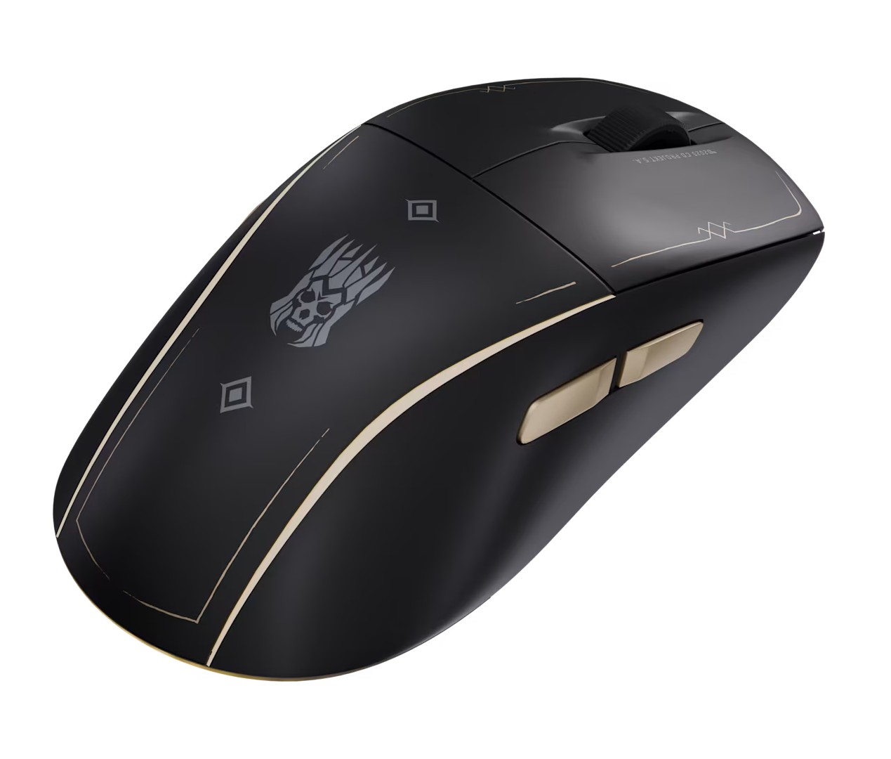 A Corsair M75 Wireless Gaming Mouse Witcher 3: Wild Hunt 10th Anniversary Edition aranyszínű gombokkal az oldalán és a Witcher világa által inspirált motívumokkal rendelkezik. Az egéren Eredin Bréacc Glas, a Wild Hunt királyának szimbóluma is megtalálható.