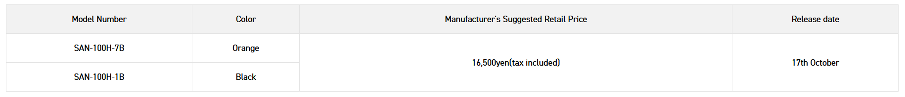 Az általános megjelenésre vonatkozó foglalások a címen október 1-jén nyílnak mega hivatalos megjelenés október 17-én lesz. A kiskereskedelmi ár 16 500 jen. A kezdeti készlet várhatóan rendkívül korlátozott lesz, és az értékesítés a Casio Online-on keresztül sorsolási rendszerben történik, a többi csatorna pedig a megjelenés napján 10 órakor nyílik meg. Mindkét színe - narancssárga/fehér és fekete - elérhető lesz a kezdetektől fogva, és a megjelenés előtti crowdfunding visszhang alapján várhatóan nagy lesz a kereslet. A sorsolási kérelmet itt töltheti ki: https://www.casio.com/jp/online-store/lottery/2025SAN-100H/.