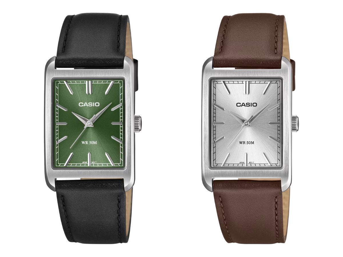 A Casio hat új MTP-B215 karórát mutatott be, amelyek világszerte megjelennek a piacokon. Ez az analóg modell egyszerű kialakítású, téglalap alakú arcán három mutatóval és pálcikaindexekkel.