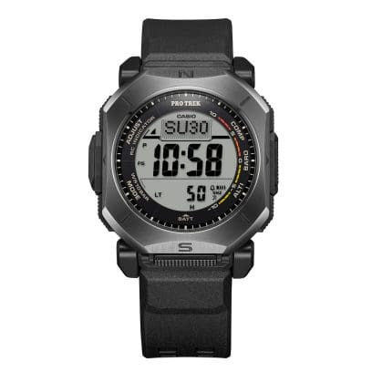 Ez egy tripla érzékelős óra. Digitális iránytűt, magasságmérőt (-700 és 10 000 m között), barométert a nyomás alakulásának grafikonjával és hőmérőt tartalmaz. A duplex LCD kijelző itt kulcsfontosságú - az iránytű grafikája a fő kijelző fölé került a könnyebb valós idejű navigáció érdekében. A Casio szerint az iránytű akár 60 másodpercig is képes folyamatosan működni, és az iránykövetés dinamikusan jelenik meg.
