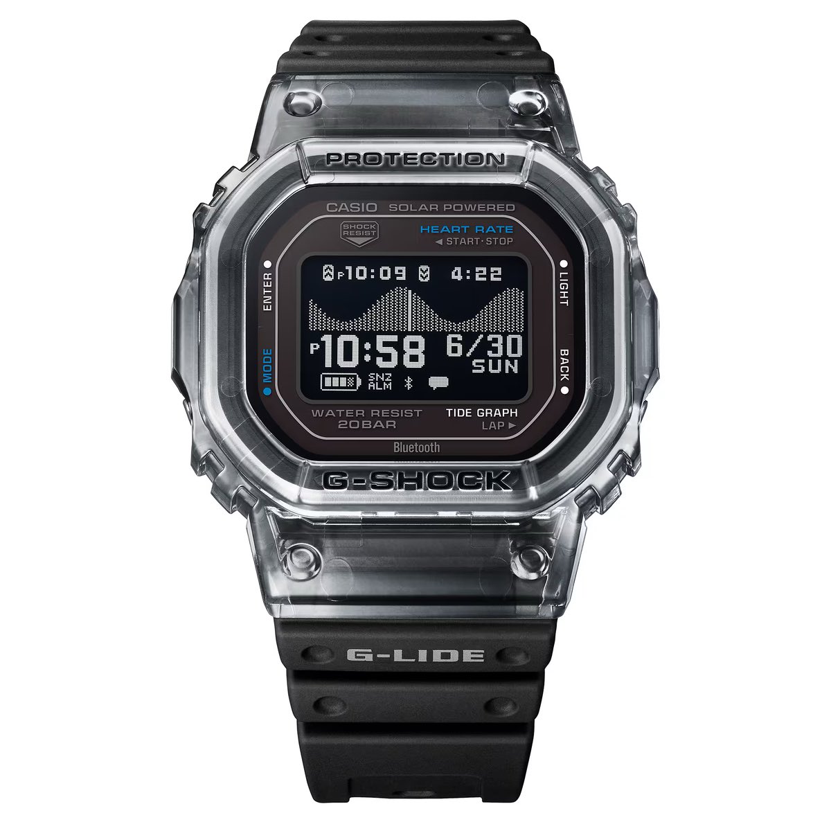 A szörfös esztétika és a teljes értékű G-Squad fitness nyomkövetéssel képességekkel, ezek a négyzet alakú órák nagyban kölcsönöznek a népszerű GBX-100-ból. Mind a fekete GBX-H5600-1, mind a kék GBX-H5600-2 frissítő, áttetsző dizájnnal rendelkezik, amely tökéletesen idézi a nyári tengerparti hangulatot, és nagy felbontású, nagy kontrasztú MIP LCD kijelzővel büszkélkedhet, amely még közvetlen napfényben is gyerekjátékká teszi az értesítések és az árapálygrafikonok ellenőrzését. Mindkettő környezetbarát biomassza műanyagból készült, és mindössze 47 gramm súlyú.