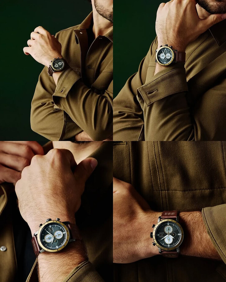 Az óra egy 43,6 mm-es, sötét tónusú rozsdamentes acél tokot használ, barna bőrszíjjal, amely látható varrással rendelkezik a fülek közelében. Az általános megjelenés közelebb áll egy pilóta-stílusú kronográfhoz, de a számlapba több, a sorozatra vonatkozó utalást is beépítettek. Első pillantásra a számlap szürke napbarnított felületnek tűnik, de közelebbről megnézve a tematikus részmutatókat láthatjuk. A felső alszámlap a Mudhorn szimbólumot használja, amely arra a lényre utal, amelyet Din Djarin legyőz a sorozatban, míg az alsó regiszteren a mandalori sisak művészi ábrázolása látható. Kis, stilizált Grogu-füleket is beépítettek a dizájnba. Ezek a részletek zökkenőmentesen illeszkednek a kronográf elrendezéséhez, ahelyett, hogy harsányak lennének.