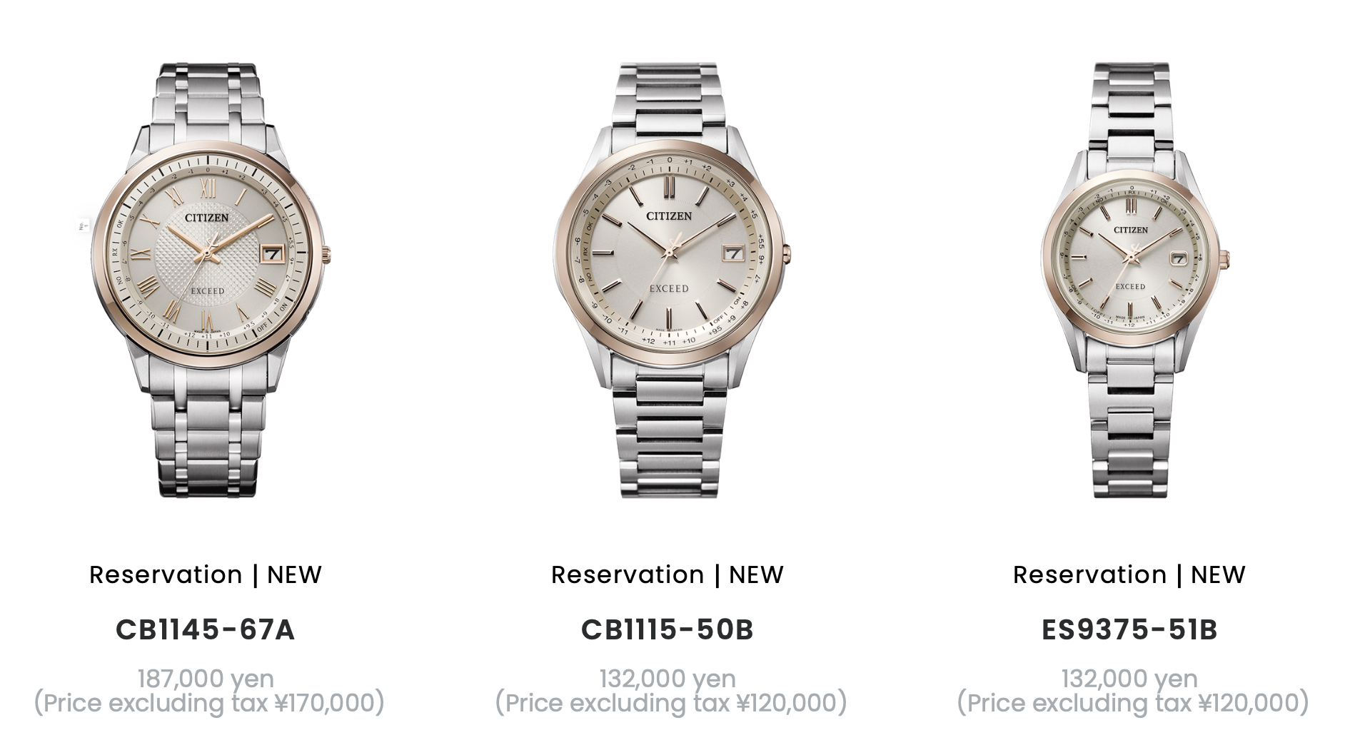 Egy új 8-as sorozatú modell, a Citizen három friss modellt mutatott be az Exceed termékcsalád keretében Japánban, és a tervek szerint mindhárom március 5-én jelenik meg. Az új referenciák - ES9375-51B, CB1115-50Bés CB1145-67A - eco-Drive napelemes technológiával és többsávos rádiós időméréssel rendelkeznek, és karcsú Super Titanium tokban kaphatók.