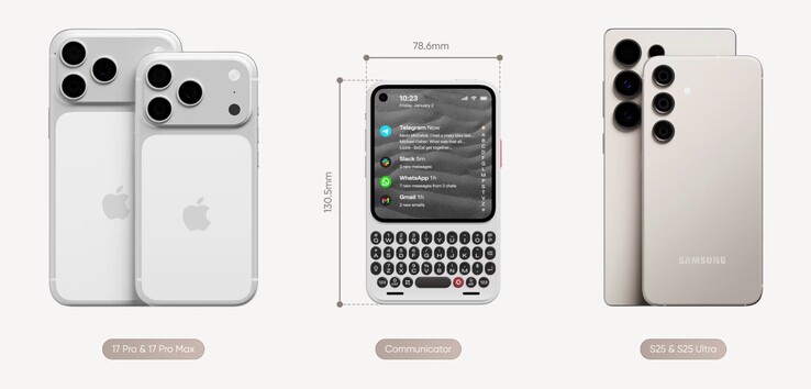A Clicks Communicator egy kompakt középkategóriás okostelefon, amely a Android 16 címen érhető el, és frissítéseket kaphat a Android 20 címen. A majdnem négyzet alakú, 4 hüvelykes érintőképernyő alatt egy billentyűzet található, amely érintésérzékeny, így trackpadként is funkcionál, a szóköz-sáv pedig ujjlenyomat-érzékelőnek ad otthont.