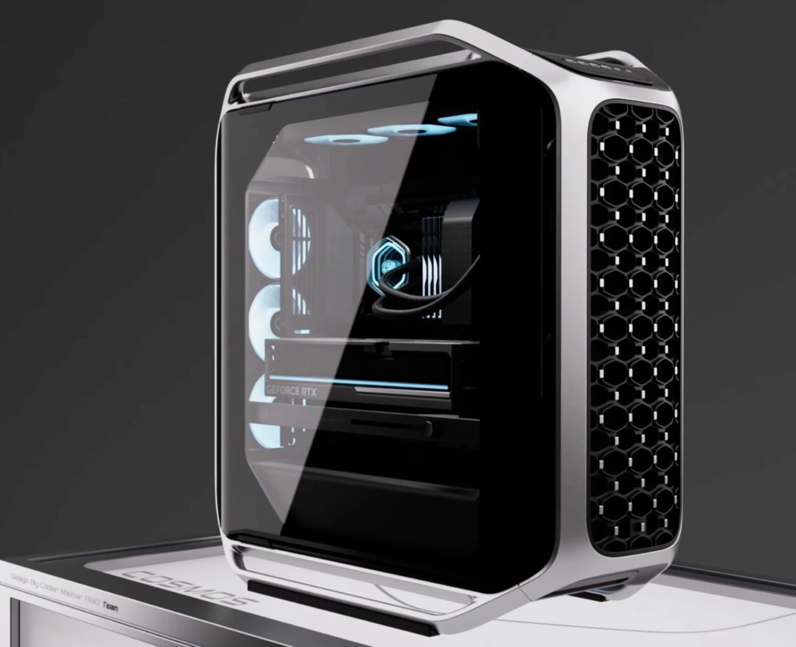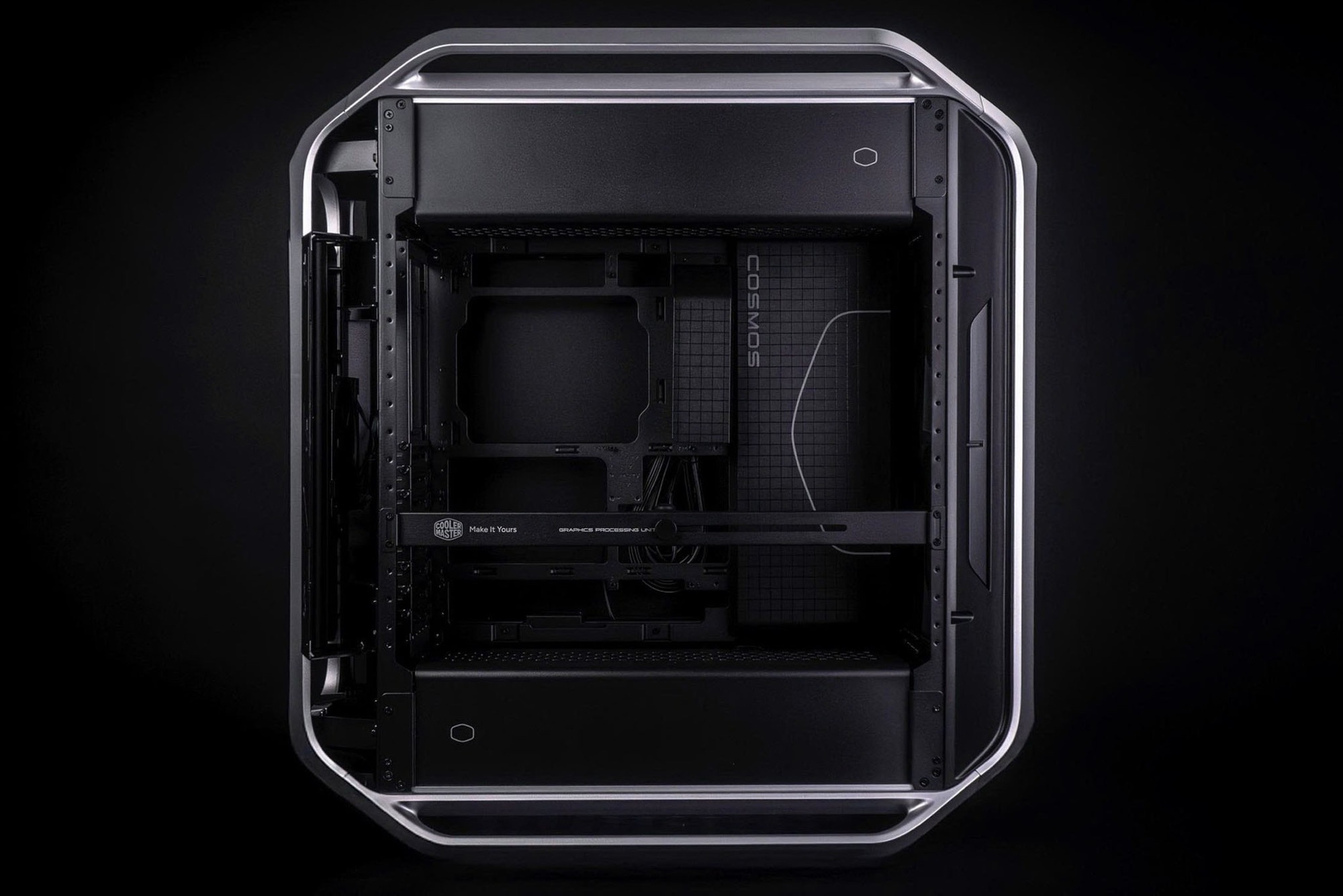 A Cooler Master Cosmos Alpha egy új zászlóshajó PC-torony, amely az alumínium vázat üveg oldallappal kombinálja. A keret zökkenőmentesen megy át lábakba és fogantyúkba, ami leegyszerűsíti a szállítást. Az előlap perforált, hogy maximalizálja a légáramlást a mögötte lévő ventilátorokhoz.