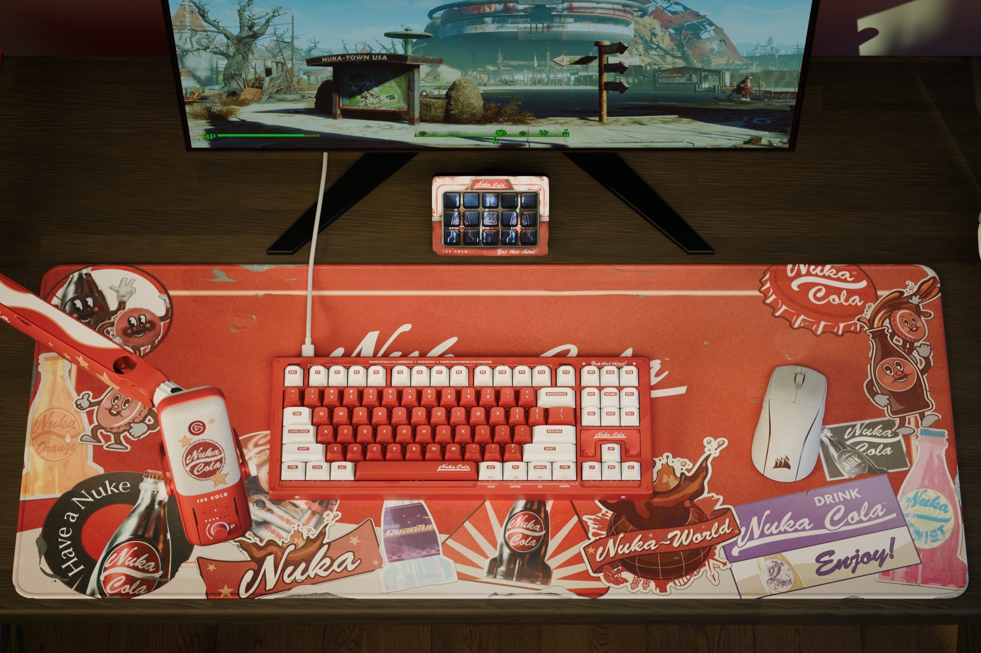 A Corsair a Bethesdával együttműködve a Fallout-univerzum legnépszerűbb italának, a Nuka Colának ikonikus dizájnja által inspirált játékperifériák teljes választékát dobja piacra. A kollekció retro-futurisztikus esztétikát képvisel, piros-fehér színösszeállítással, sárga csillagokkal, merész színtömbökkel és a stílusos Nuka Cola logóval.