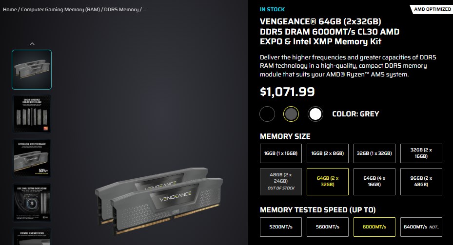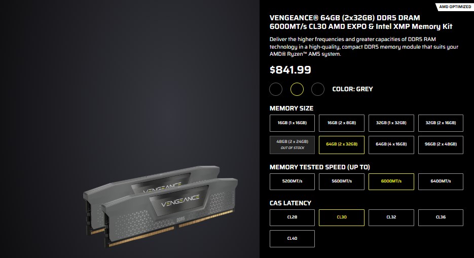 Ez nem áll meg itt. A Corsair Dominator Titanium Titanium RGB 48GB DDR5 kit ára korábban 647,99 dollár volt. Ez az ár most 819,99 dollárra emelkedett, ami tovább utal arra, hogy a Corsair több csúcskategóriás memóriakészlet esetében is felfelé módosította az árakat.
