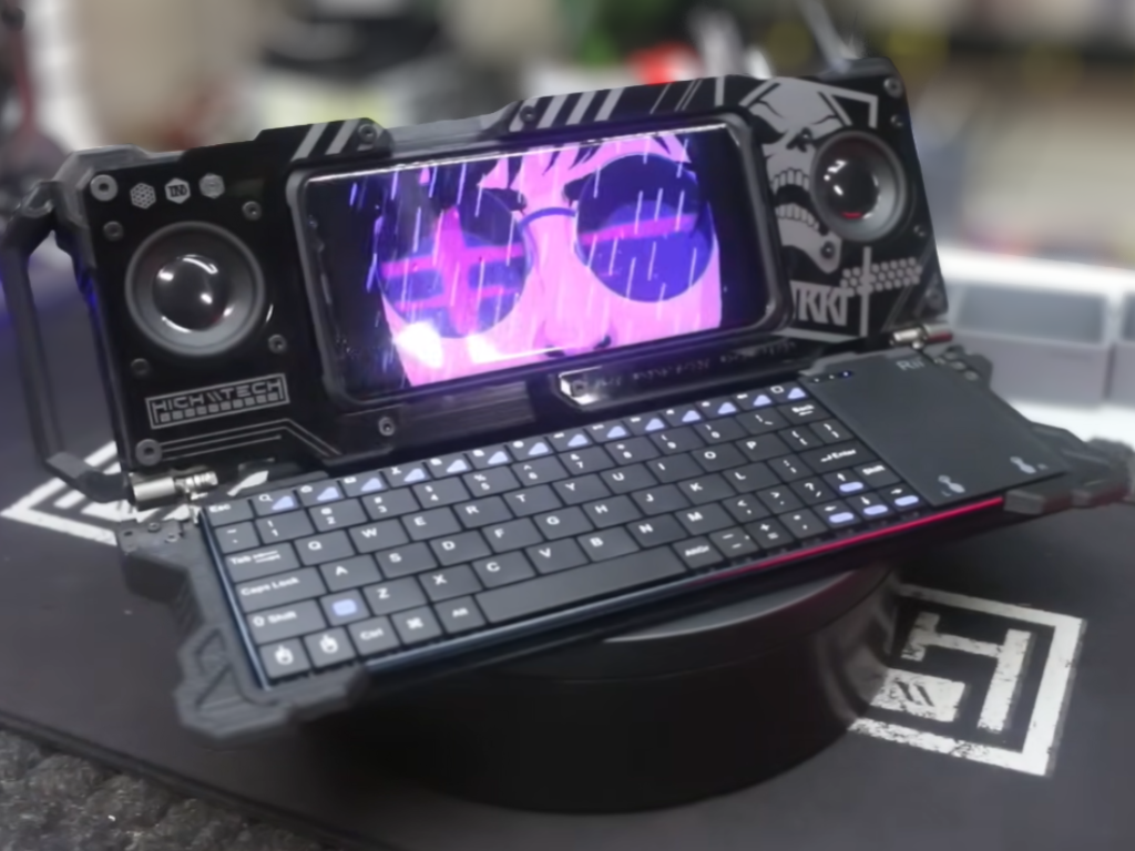 Ahelyett, hogy ez egy önálló számítógépes rig lenne, valójában egy barkácsolt okostelefon tok, amelybe néhány extra finomságot pakolt. A cyberdeck zseniálisan használ hétköznapi alkatrészeket. Két 5 W-os sztereó hangszóróra kötött Bluetooth-erősítővel rendelkezik a dübörgő hangzás érdekében. Ezenkívül egy mini taktikai billentyűzetet is tartalmaz, érintőkijelzővel a navigációhoz és a könnyű gépeléshez.