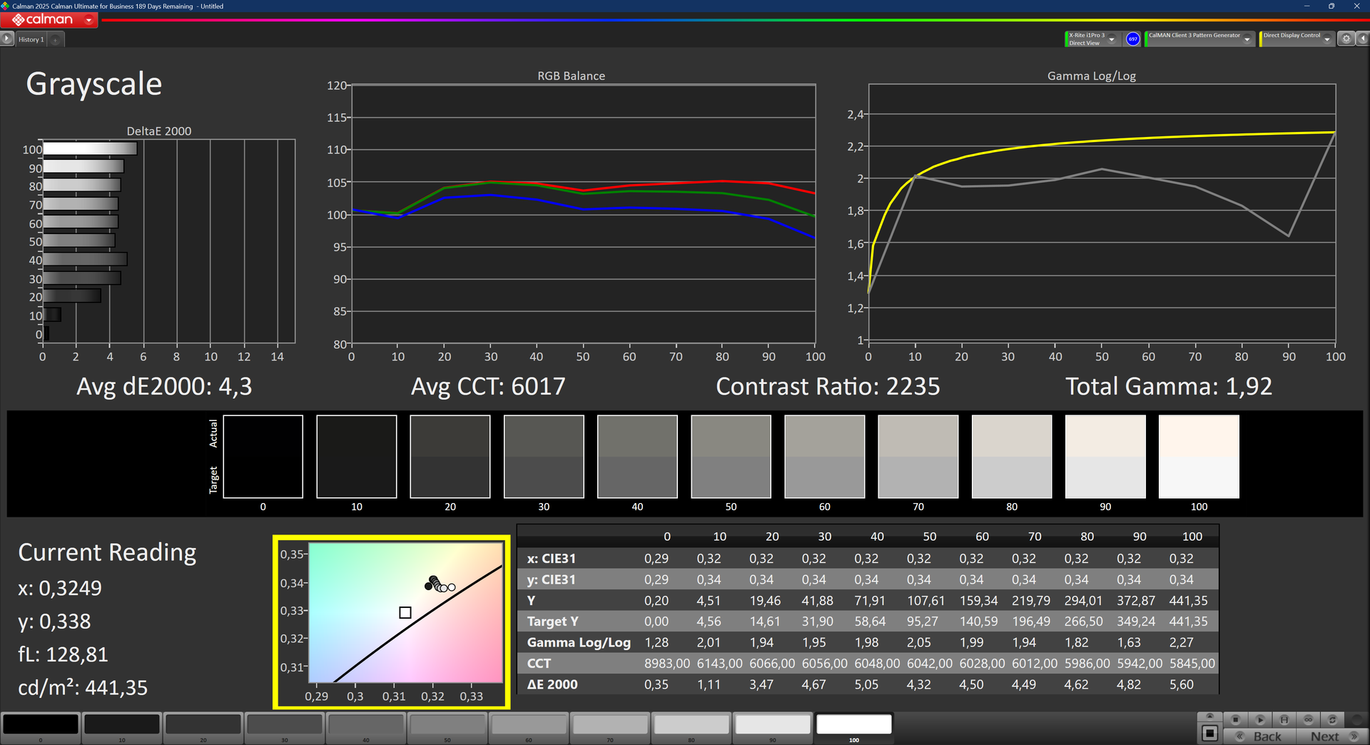 ΔE Greyscale Calman: 4.3 | ∀{0.09-98 Ø5.1}