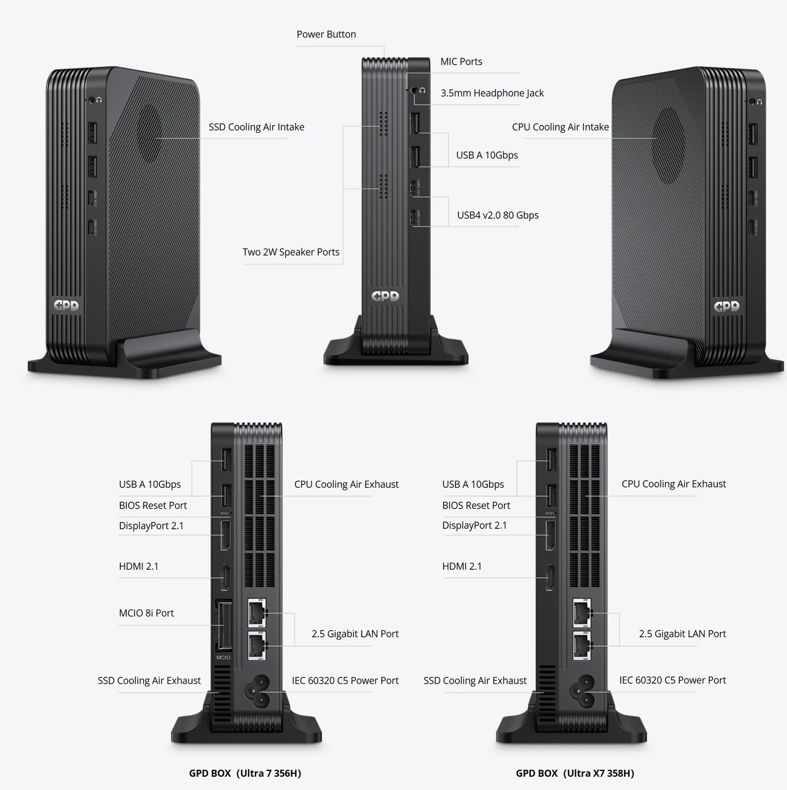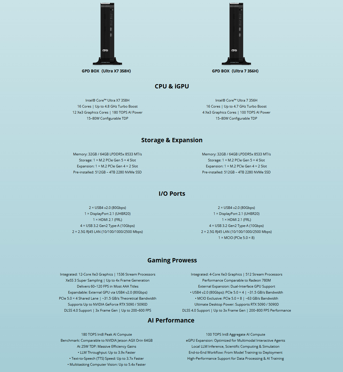 Most a vállalat további specifikációkat osztott meg a GPD Boxról. Mint a vállalat megerősítette, a mini PC-t az Intel Panther Lake CPU-k hajtják majd. Konkrétan két opció lesz elérhető: az egyik a Intel Core Ultra X7 358H és a másik a Core Ultra 7 356H-val.
