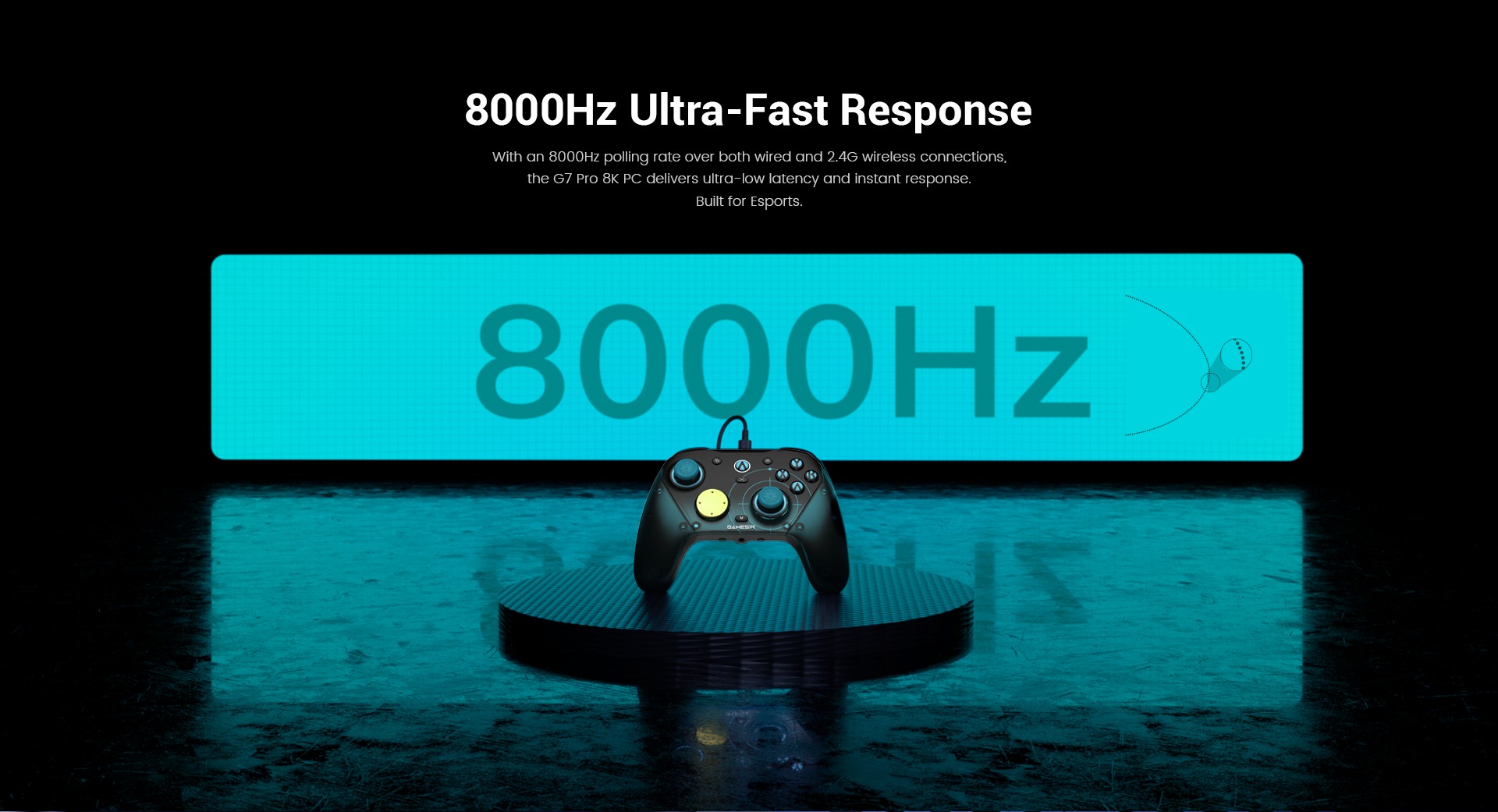 Az egyedi tervezés mellett a G7 Pro 8K PC Aimlabs Edition vezeték nélküli vezérlő második generációs Mag-Res TMR botokat használ, amelyek simábbak, lineárisabb vezérléssel rendelkeznek, és rendkívül alacsony energiafogyasztással büszkélkedhetnek. Az új vezérlő emellett 8000 Hz-es lekérdezési sebességgel rendelkezik vezetékes és 2,4 GHz-es vezeték nélküli üzemmódban, szemben a standard verzió 1000 Hz-es lekérdezési sebességével.