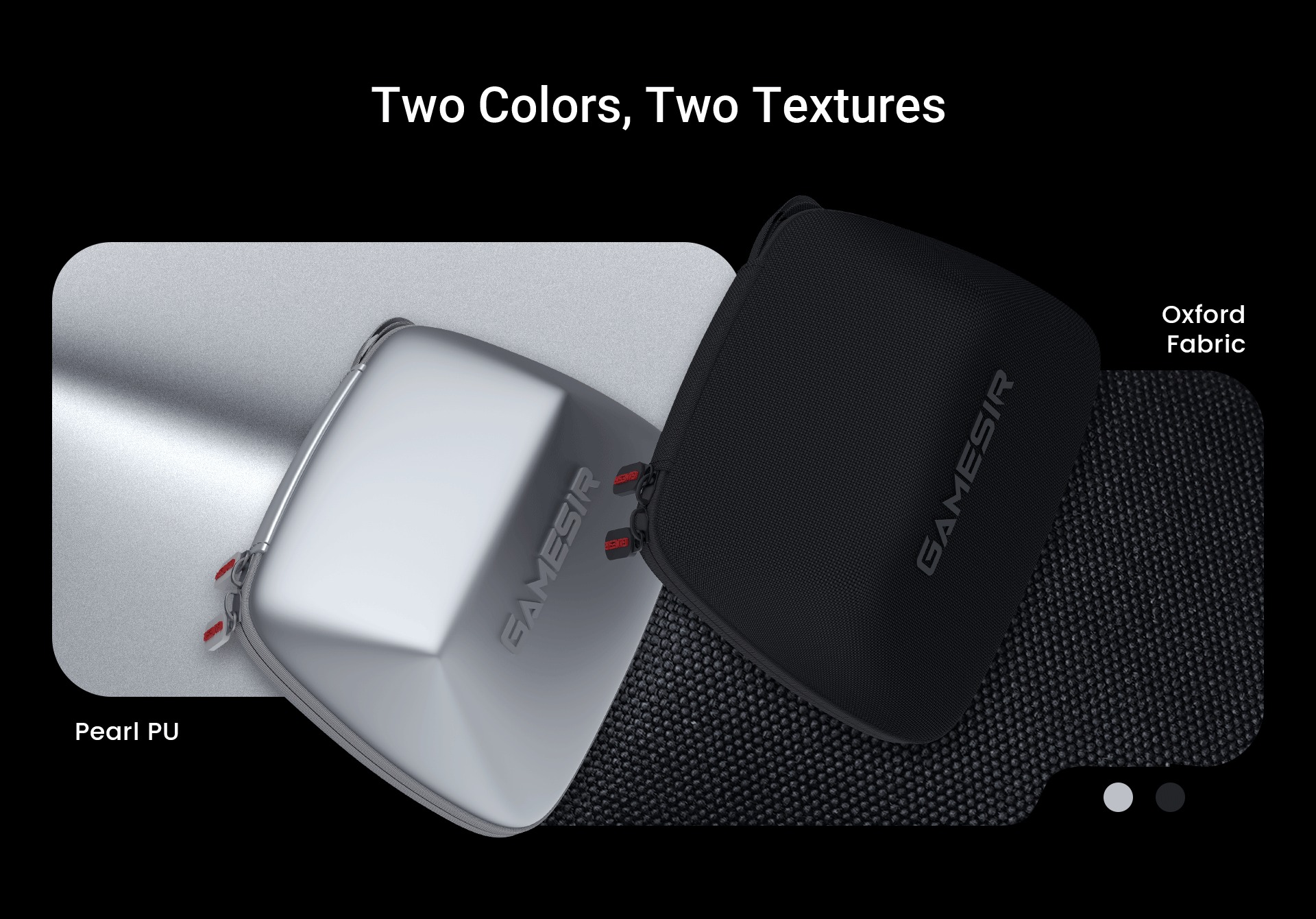A fekete és ezüst színben kapható GameSir G7 Pro hordtáska egyedi formázással rendelkezik, amely biztosítja, hogy a kontroller tökéletesen és biztonságosan illeszkedjen, amikor belehelyezik. A színtől függően Oxford szövetből (fekete) vagy gyöngyházszínű poliuretánból (ezüst) készült tokot kapsz, mindkettő puha bársony belsővel. A tok egy pánttal is rendelkezik, hogy könnyen hordozható legyen.