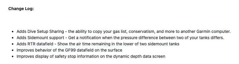 Mindezeken felül a Garmin Descent X50i új szoftvere állítólag optimalizálja a Gradient Factor 99% (GF99) adatmezőt, amikor a felszínen van. Emellett javítja a biztonsági megállásra vonatkozó információk megjelenítésének módját a búvárkomputer dinamikus mélységadatok képernyőjén.