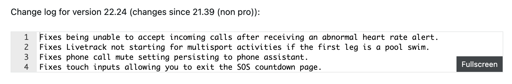 A 22.24-es béta verzióval a Garmin egy, az új LiveTrack funkcióhoz kapcsolódó problémát javít. Megoldódott az a probléma, hogy a funkció nem indult el automatikusan a több sportágat érintő tevékenységek esetében, különösen azoknál, amelyek medencében úszással kezdődtek. Ebben a frissítésben a vállalat egy olyan hibát is kijavított, amely megakadályozta, hogy a felhasználók egy abnormális pulzusjelzést követően fogadni tudjanak egy bejövő hívást. Emellett a telefonhívás némításának beállításával és az SOS visszaszámláló oldallal kapcsolatos problémák is megoldódtak.