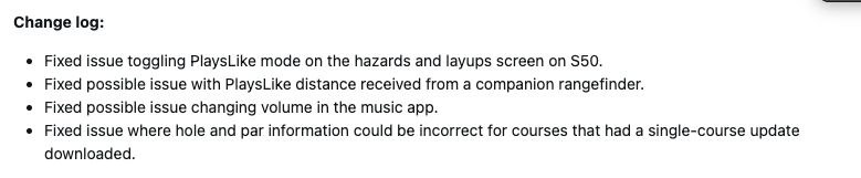 A Garmin egy olyan hibát is kijavított, amely hibás lyuk- és par-információkat eredményezhetett egy pálya esetében. Emellett a vállalat megoldotta azt a problémát, amely miatt a felhasználók nem tudták beállítani a hangerőt az Approach okosóra zenei alkalmazásában.