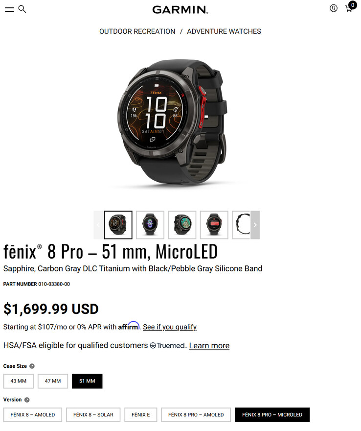 Kezdetben 800 dollár különbség volt a Fenix 8 Pro 51 mm-es, AMOLED és MicroLED kijelzővel ellátott változatai között. Ennek eredményeképpen a Garmin új, ultra-fényes kijelzőtechnológiáját csak úgy lehetett opcionálni, hogy 1.999,99 dollárt kellett költeni.