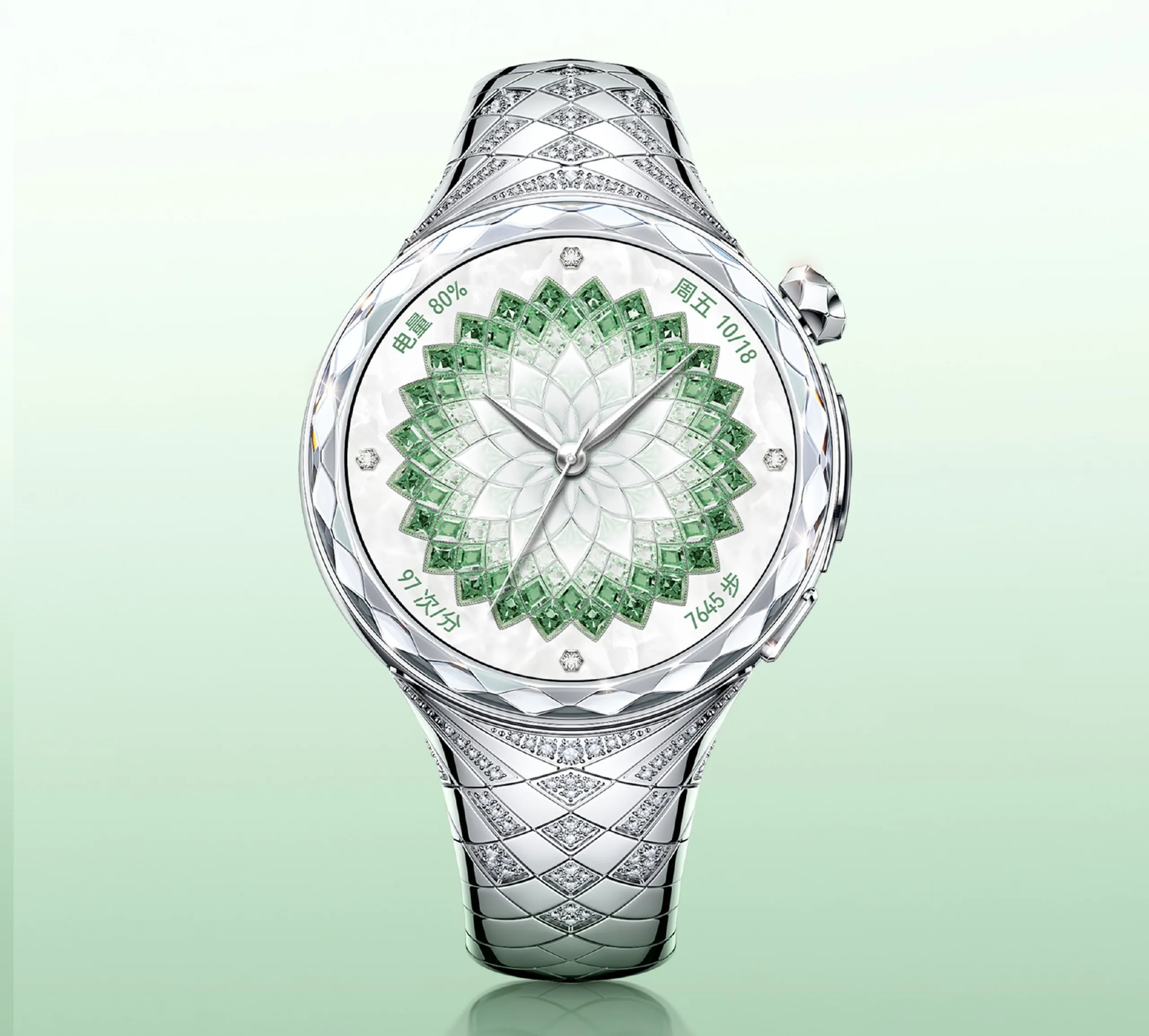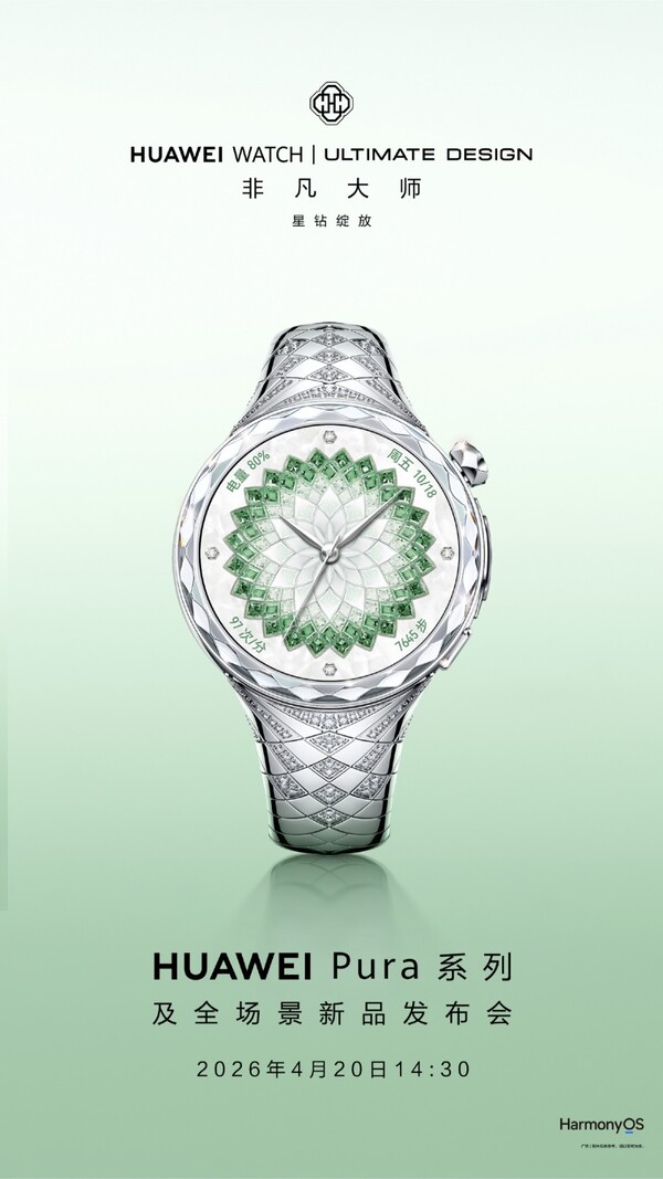 A Weibo-n megosztott teaser poszter szerint a Huawei Watch Ultimate Design Extraordinary Master Diamond Edition gyémántokkal van borítva. A 12, 3, 6 és 9 órai jeleknél egy-egy gyémánt található, és egy csomó gyémánt van a szíjon is. Még a tok is gyémántcsiszolt kialakítású.