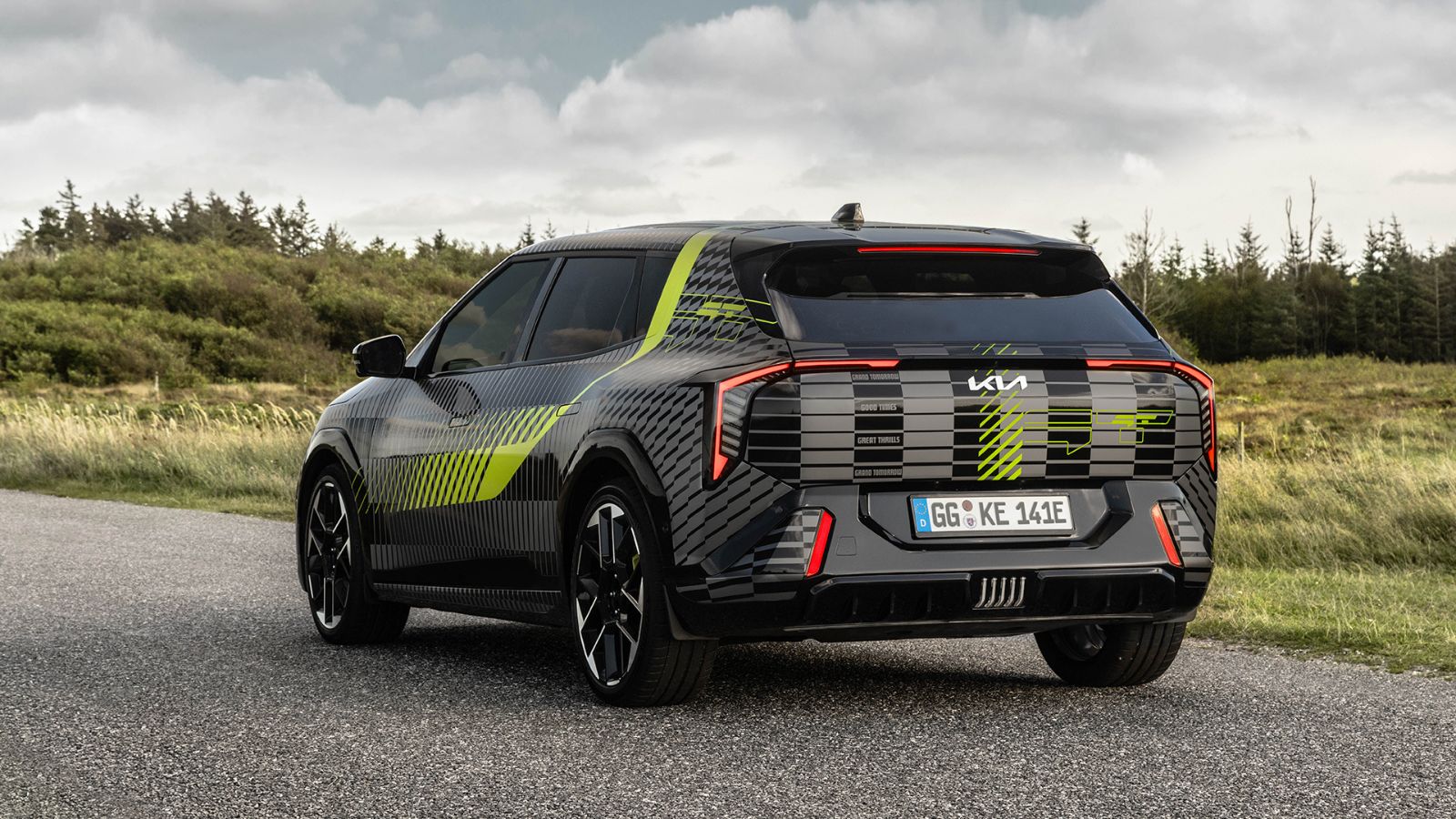 Most a sajtóközleményben egy új GT Wrapről, a Kia bemutatja az EV4 GT ferdehátút. A GT Wrap egy fekete, szürke és neonzöld fólia, amelyet a márka elektromos GT prototípusainak álcázására használnak. A Kia jelzi, hogy a geometrikus dizájn a GT-modellek sebességére utal, mondván, hogy "a (Kia) nagyteljesítményű autóinak érzelmi karakterét" érinti. A képeken ezen a prototípuson egyedi felnik is láthatók.