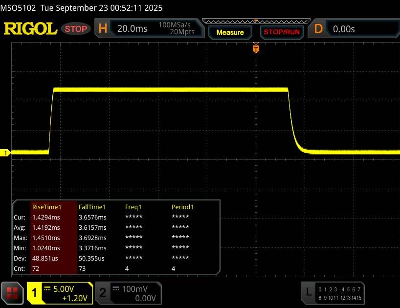5 ms ... emelkedés és süllyedés ↘ kombinálva | ↗ 1.4 ms emelkedés | |