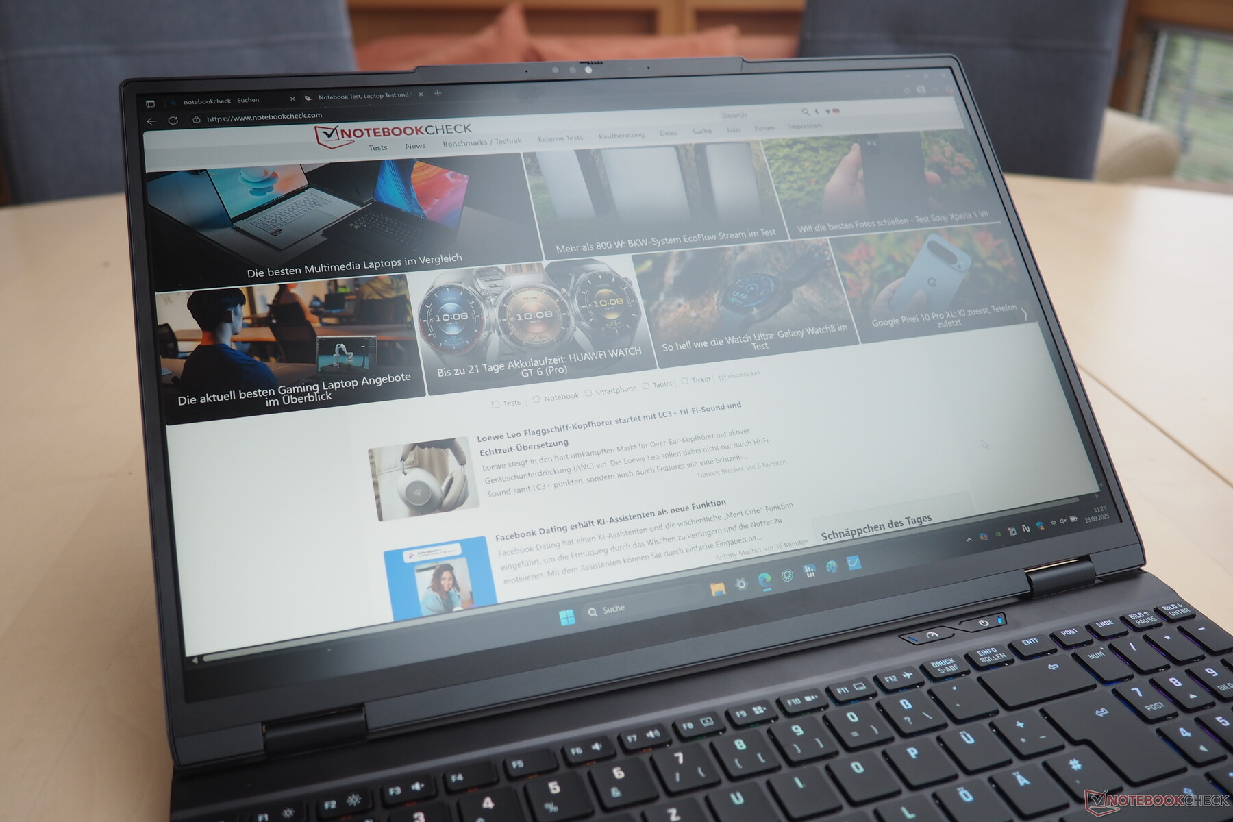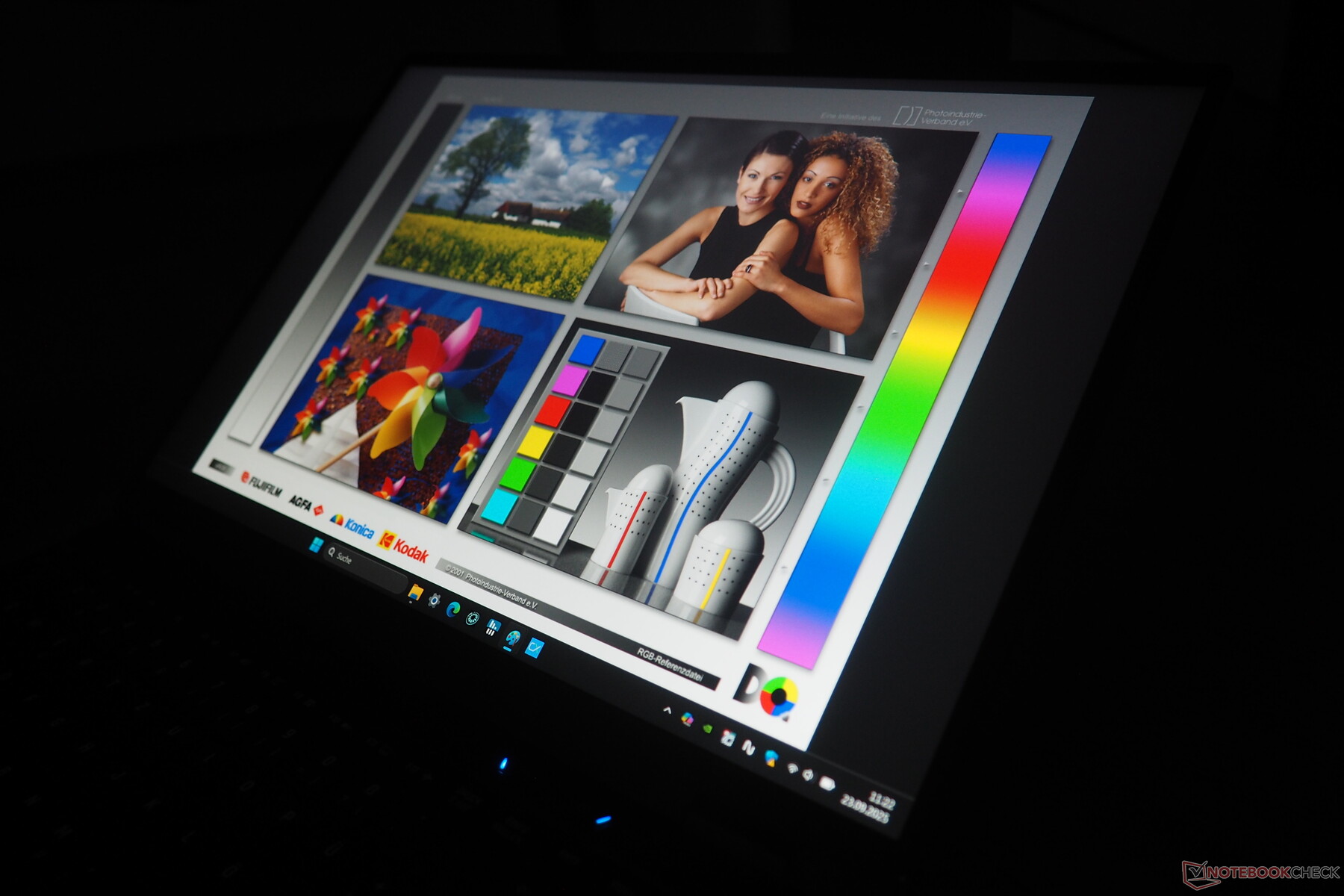 A gyártó IPS-panelt választott a kijelzőhöz, amely 530 cd/m²-es átlagos fényerejével világosabb helyiségekben és alkalmankénti kültéri használatra is alkalmas. Mivel a fekete szint nem egészen ilyen tökéletes (0,54 cd/m²), a kontraszt csak 1000:1 körüli értéket ér el. A Legion 5 OLED panelje ezt sokkal jobban megoldja, de erős tükröződésekkel kell megküzdenie. A vásárlóknak meg kell elégedniük az sRGB színtérrel, mivel a DCI-P3 és az AdobeRGB nem teljesen lefedett. A színpontosság azonban már a dobozból kivéve is jó.