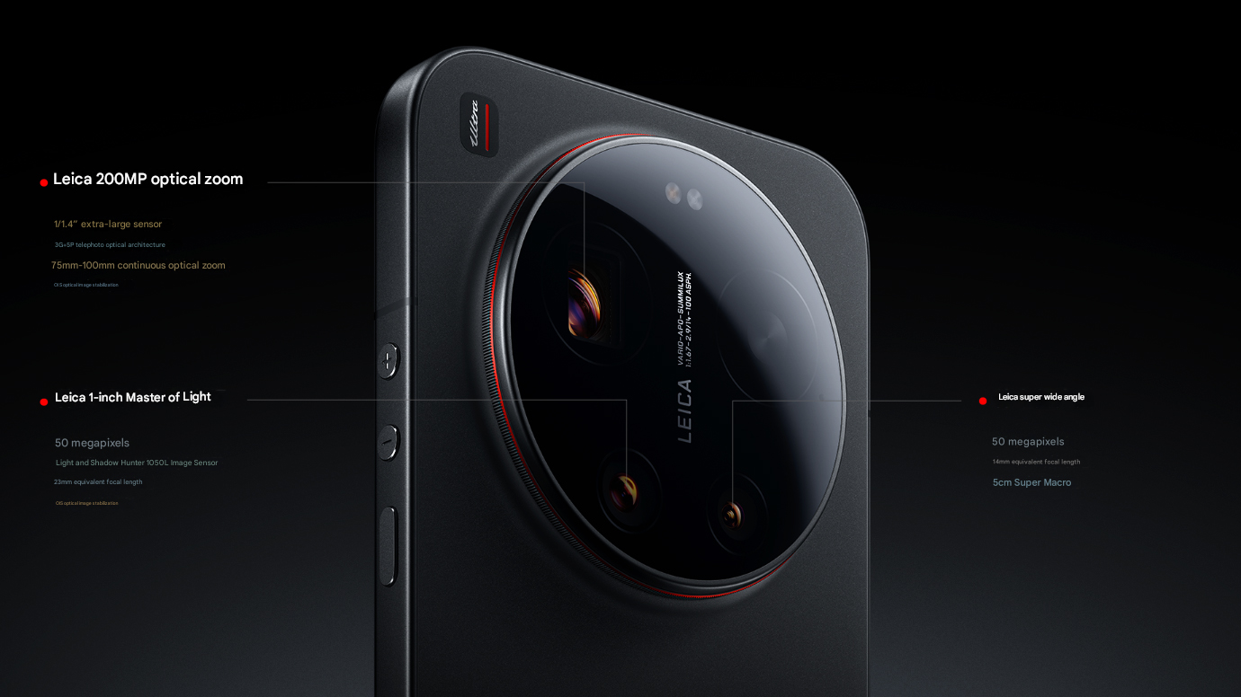A teleobjektív makró is támogatott, és a zoomkamera képes 75 mm és 100 mm gyújtótávolság között váltani anélkül, hogy észrevehető részleteket veszítene. A Leica APO tanúsítvánnyal rendelkező kamerás telefon hátoldalán egy ultraszéles szenzor is található, amely 14 mm-es gyújtótávolsággal rendelkezik.