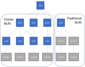 A klaszterezett geometria leegyszerűsíti a GPU működését a háromszögekkel - a 3D-s grafika építőköveivel -. Ahogy a neve is mutatja, az új specifikáció a közeli háromszögek csoportjait egyetlen egyszerűsített építőelembe csoportosítja. Ez lehetővé teszi a GPU számára, hogy a geometria topológiáját tömegesen instanciálja és mozgassa, egyszerűsítve a korábbi munkafolyamatot, amely többszörös hívást igényelt a jelenet összes háromszögéhez. Ez az új megközelítés lényegében kiküszöböli a meglévő geometria frissítésének vagy duplikálásának szükségességét, és javítja a sugárkövetés teljesítményét, ha a GPU-nak csak egyszer kell lombozatot, tömegeket vagy más kellékeket renderelnie.