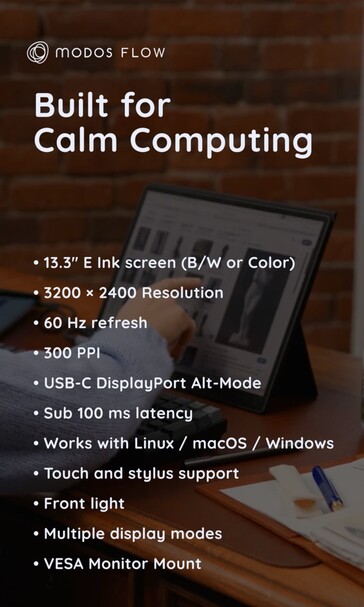 A Modos már elindult mobil e-ink kijelzőt a piacon tavaly, de a Modos Flow sokkal jobb funkciókat kínál. Mindenekelőtt az új, 13,3 hüvelykes képátlójú mobil e-ink monitor lényegesen nagyobb, 3200 x 2400 pixeles felbontást ér el, 300 PPI-s pixelsűrűséggel.