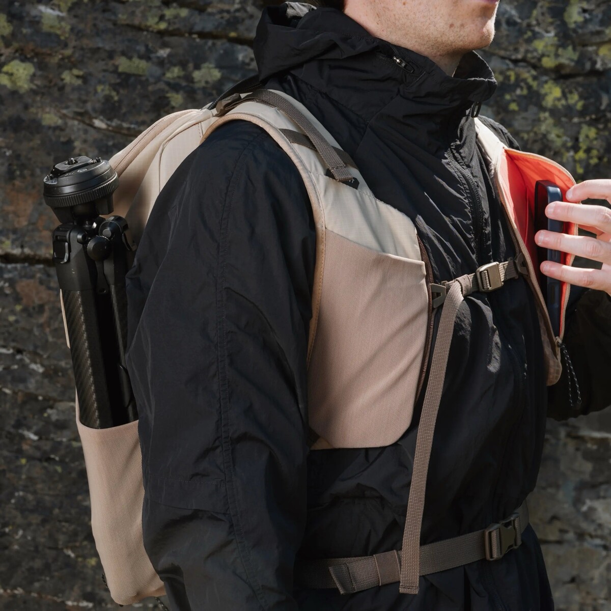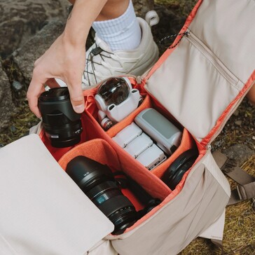 Az új Moment Sequence 23L kamerahátizsák első pillantásra úgy néz ki, mint egy hagyományos hátizsák, de párnázott rekeszekkel rendelkezik, amelyek tépőzárral rögzített, állítható elválasztókkal rendelkeznek, így különböző kamerák és objektívek számára biztosítanak helyet.