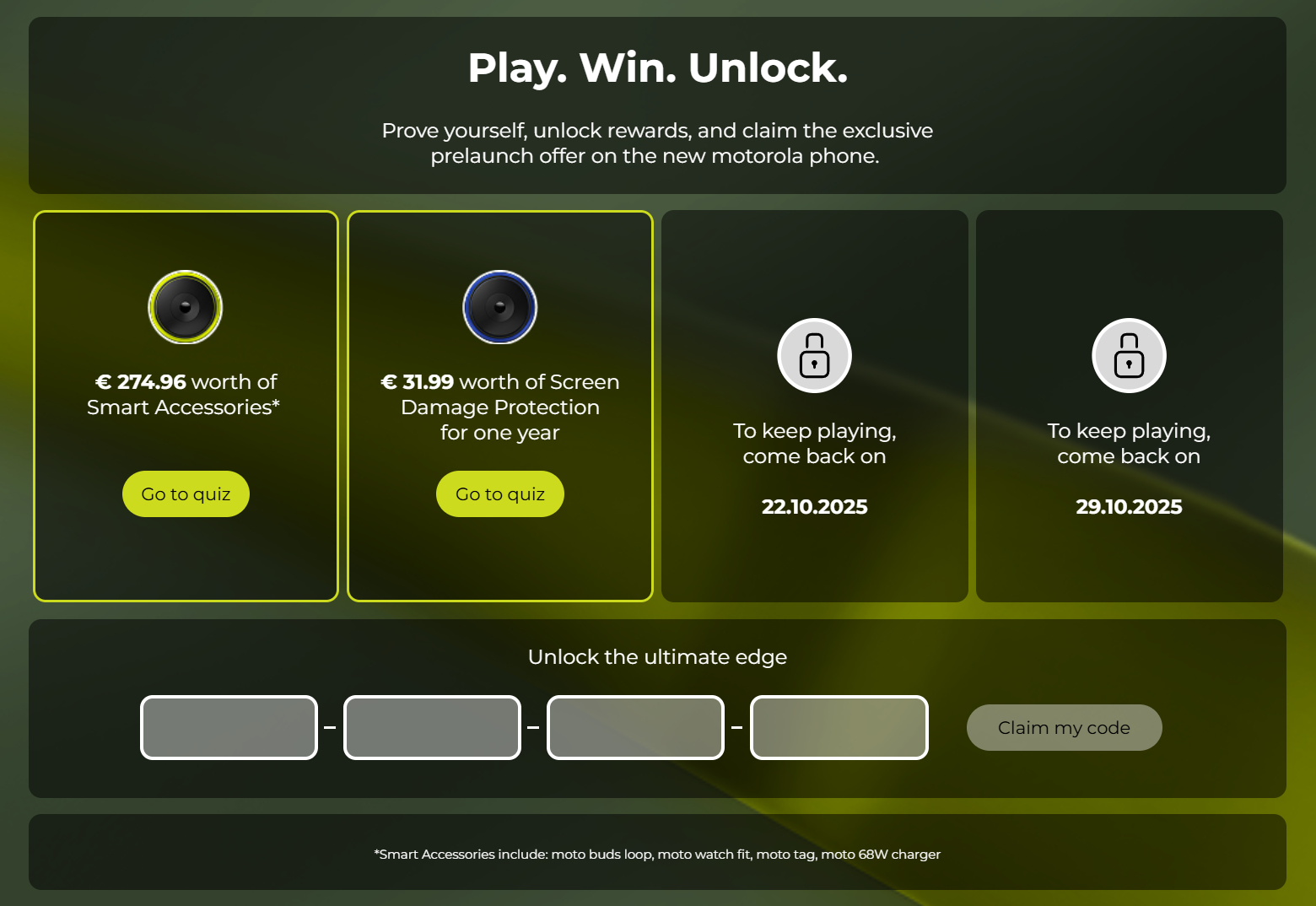 Addig is a vállalat azt sugallta, hogy az Edge 70 rendelésekhez több mint 300 euró (~350 dollár) és 340 font (~455 dollár) értékű indulási bónuszok járnak majd, többek között egyéves képernyőkárosodás elleni védelemmel és egy Moto Watch Fit, többek között kiegészítőkkel. Lásd a Motorola weboldalát ahol részt vehetsz a versenyen, hogy megnyerd ezeket a bónuszokat még a bevezetés napja előtt.