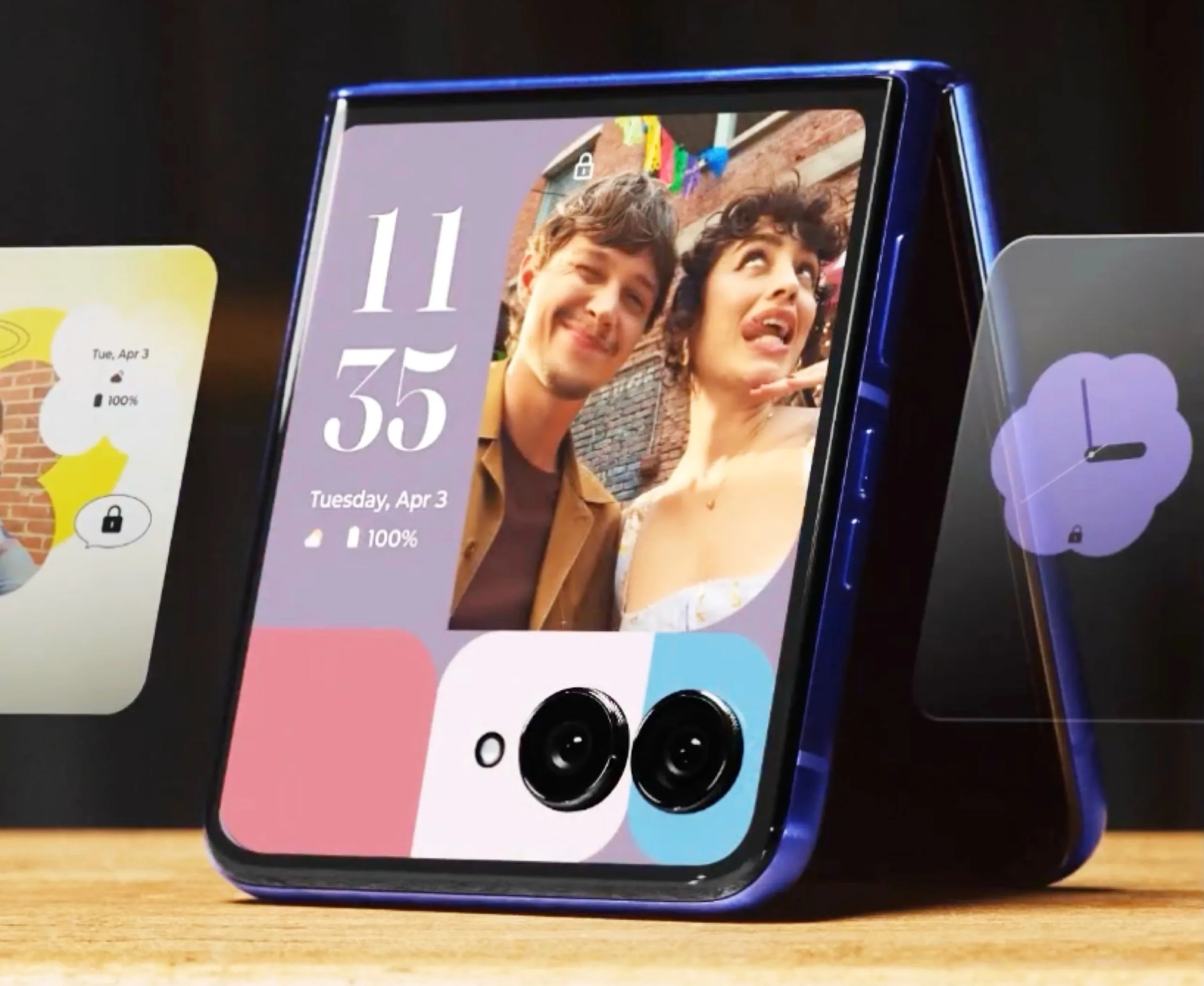 A várakozásoknak megfelelően a dizájn alig változik, a Razr Ultra 2026-ot kék vagy barna színben kínálják. A promóvideó elsősorban a 4 hüvelykes másodlagos kijelző képességeit mutatja be. Többek között az aktuális időt is képes megjeleníteni, a Motorola számos különböző dizájnt kínál, amelyek közül néhányat saját fotókkal is ki lehet egészíteni. Néhány ilyen dizájn további információkat is megjelenít, például az időjárás-előrejelzést, a dátumot vagy az akkumulátor hátralévő töltöttségét.