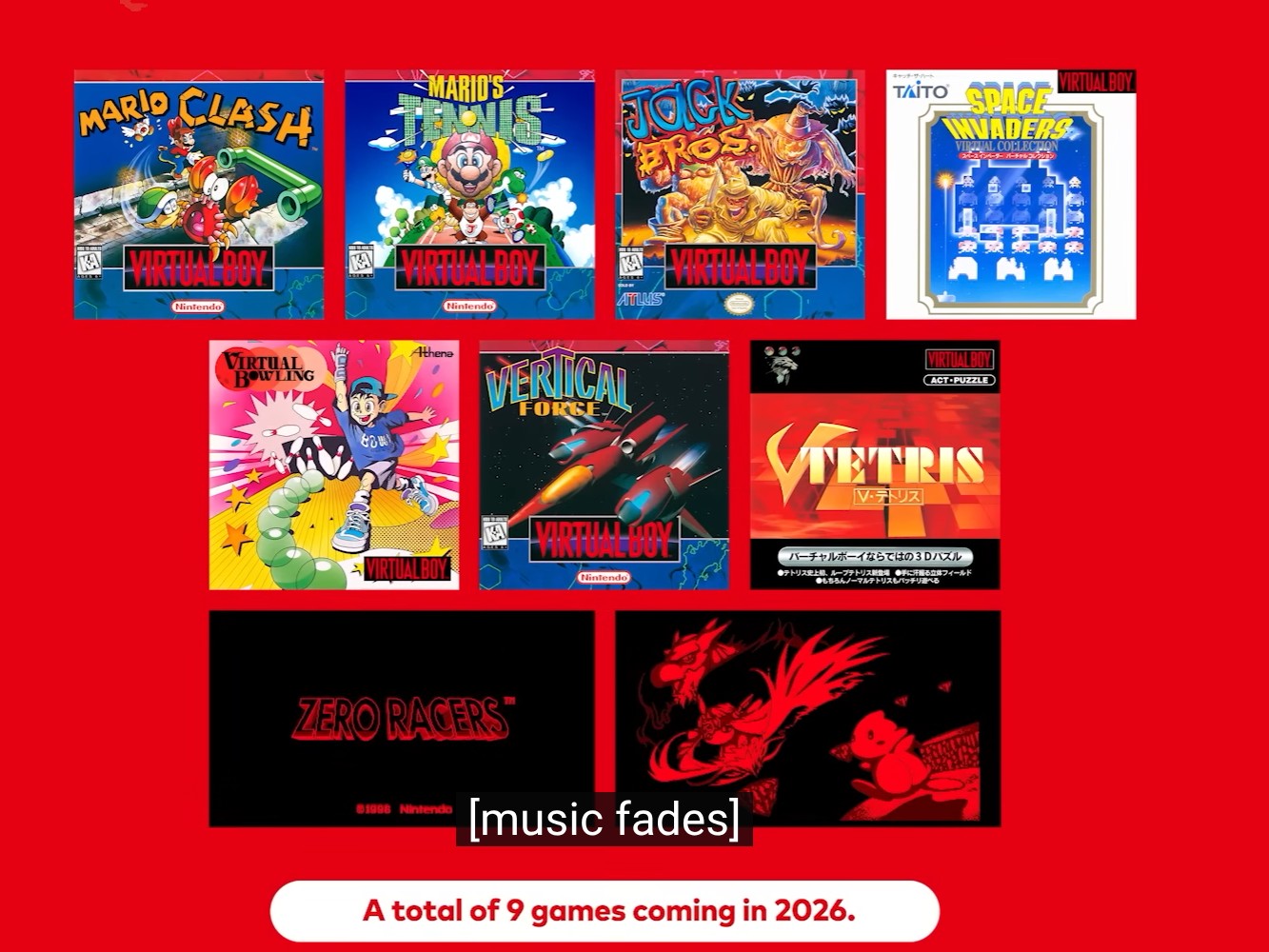 A Nintendo szerint az év folyamán további játékokkal is bővül a kínálat: Mario Clash, Mario Tennis, Jack Bros., Space Invaders Virtual Collection, Virtual Bowling, Vertical Force és V-Tetris. A Nintendo további olyan címeket is kiad, amelyek eredetileg nem jelentek meg a Virtual Boy 1995-ös megjelenésekor. Ezek a játékok a Zero Racers és a D-Hopper, és ezek is idén fognak megjelenni.