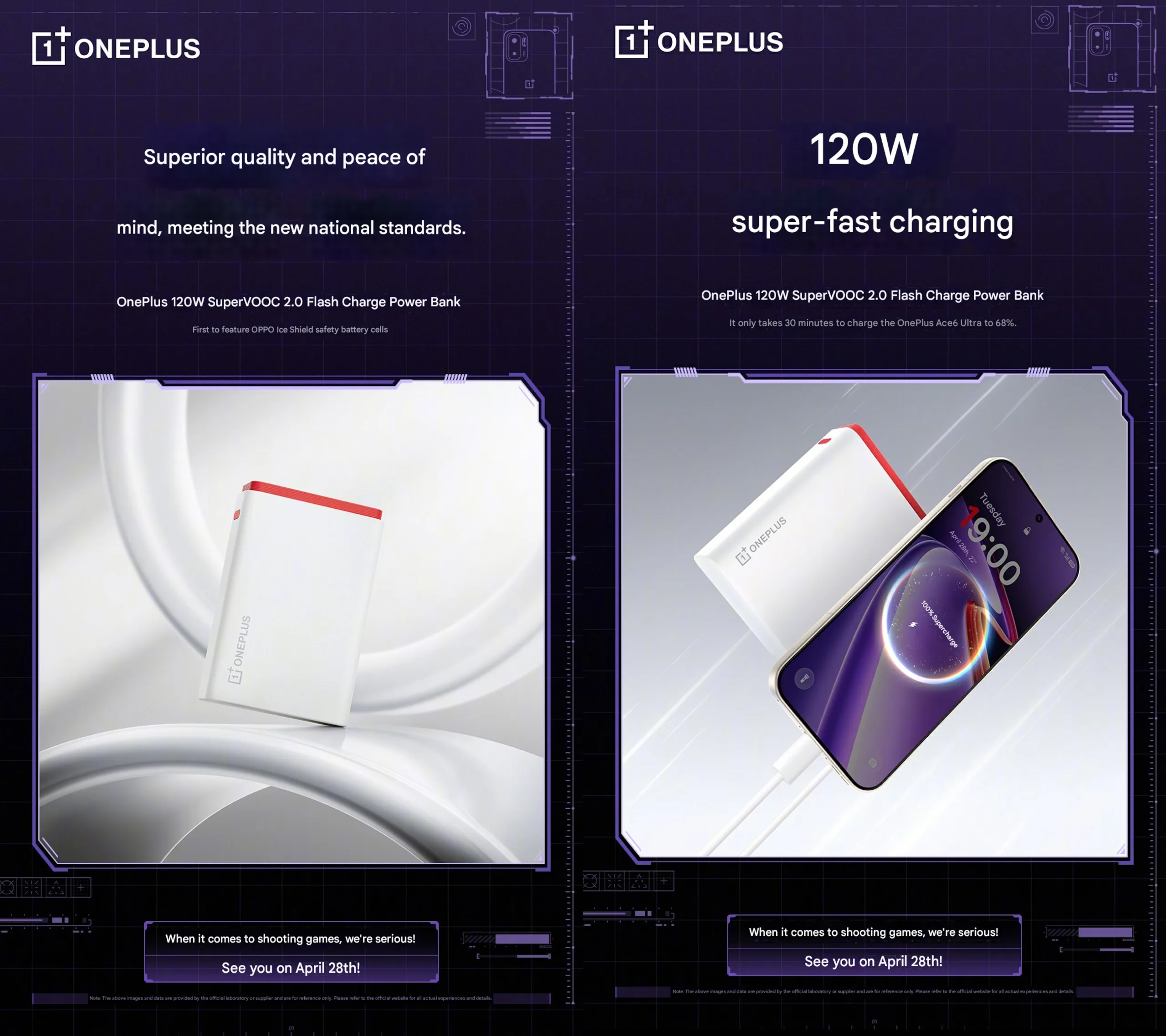 Ez az új 120W-os OnePlus power bank a vállalat új zászlóshajó okostelefonjával együtt kerül forgalomba, a Ace 6 Ultra. Ez a vadonatúj játéktelefon 2026. április 28-án fog megjelenni Kínában.