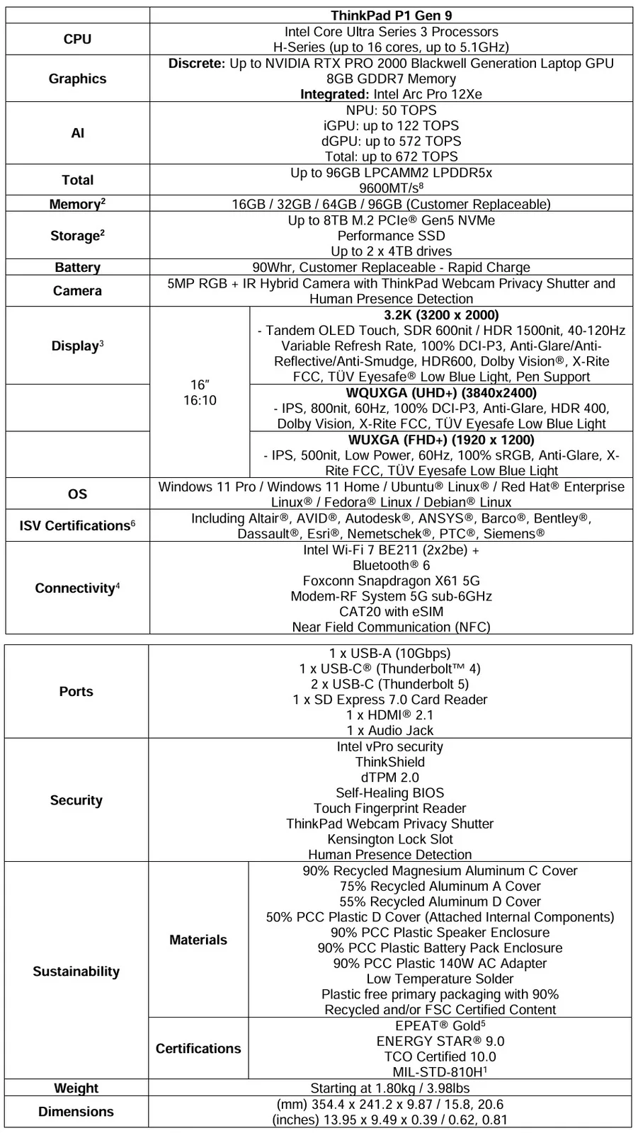 A Lenovo ThinkPad P1 Gen 9 2026 júniusában lesz elérhető. A Lenovo egyelőre nem jelentett be árakat.