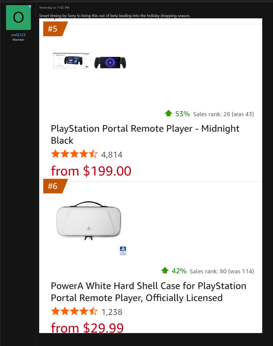 A magasabb PS Portal eladások nem csak az amerikai Amazonra korlátozódik. Egy másik fórumtag megosztott egy közösségi média posztot japán kiskereskedelmi adatokkal. A PlayStation Portal frissítése után a játékkéziszámítógép egyes boltokban már el is fogyott. Az Amazon Japánban az előző 30 napban történt vásárlások hirtelen 700-ról 800 darabra ugrottak.