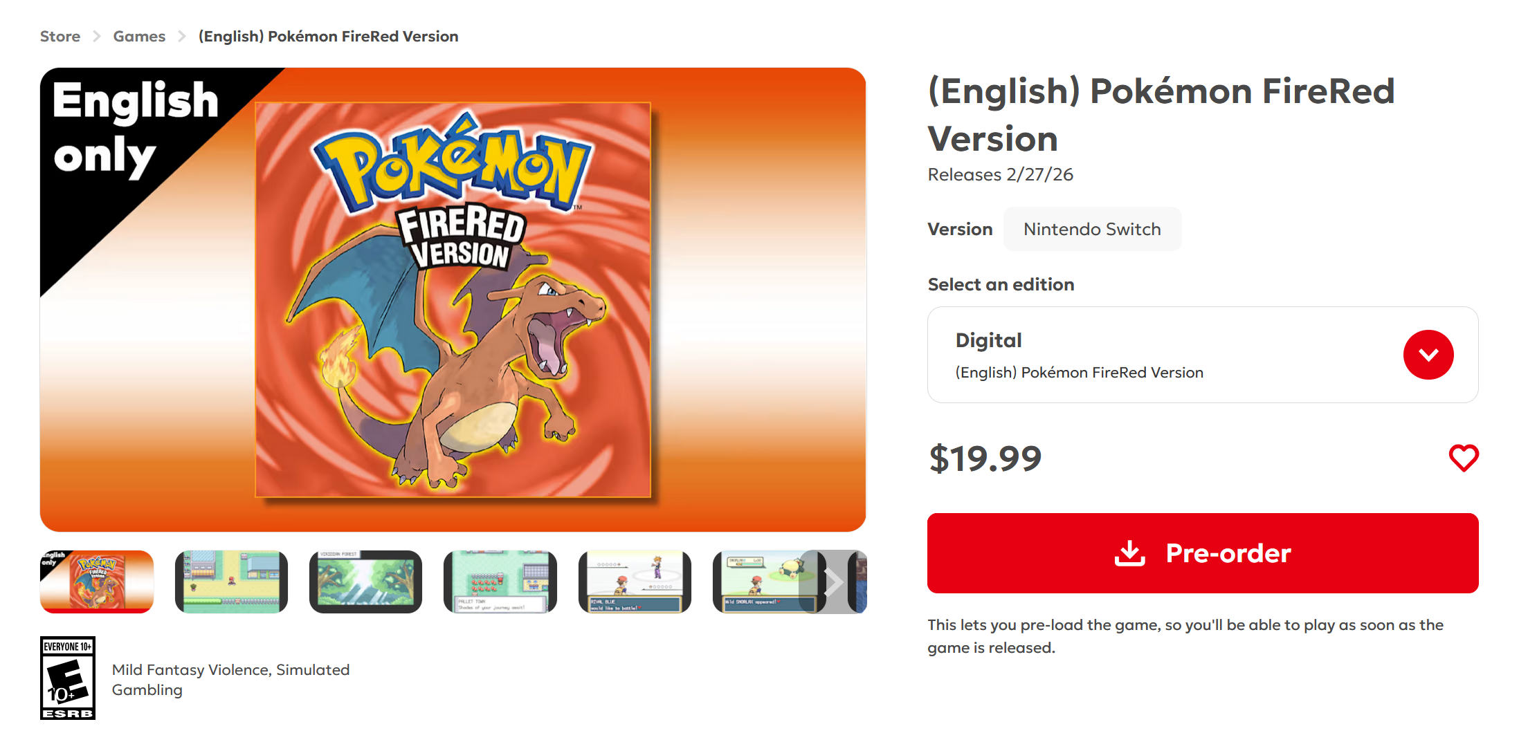 Nintendo eShop (Pokémon FireRed | Pokémon LeafGreen)