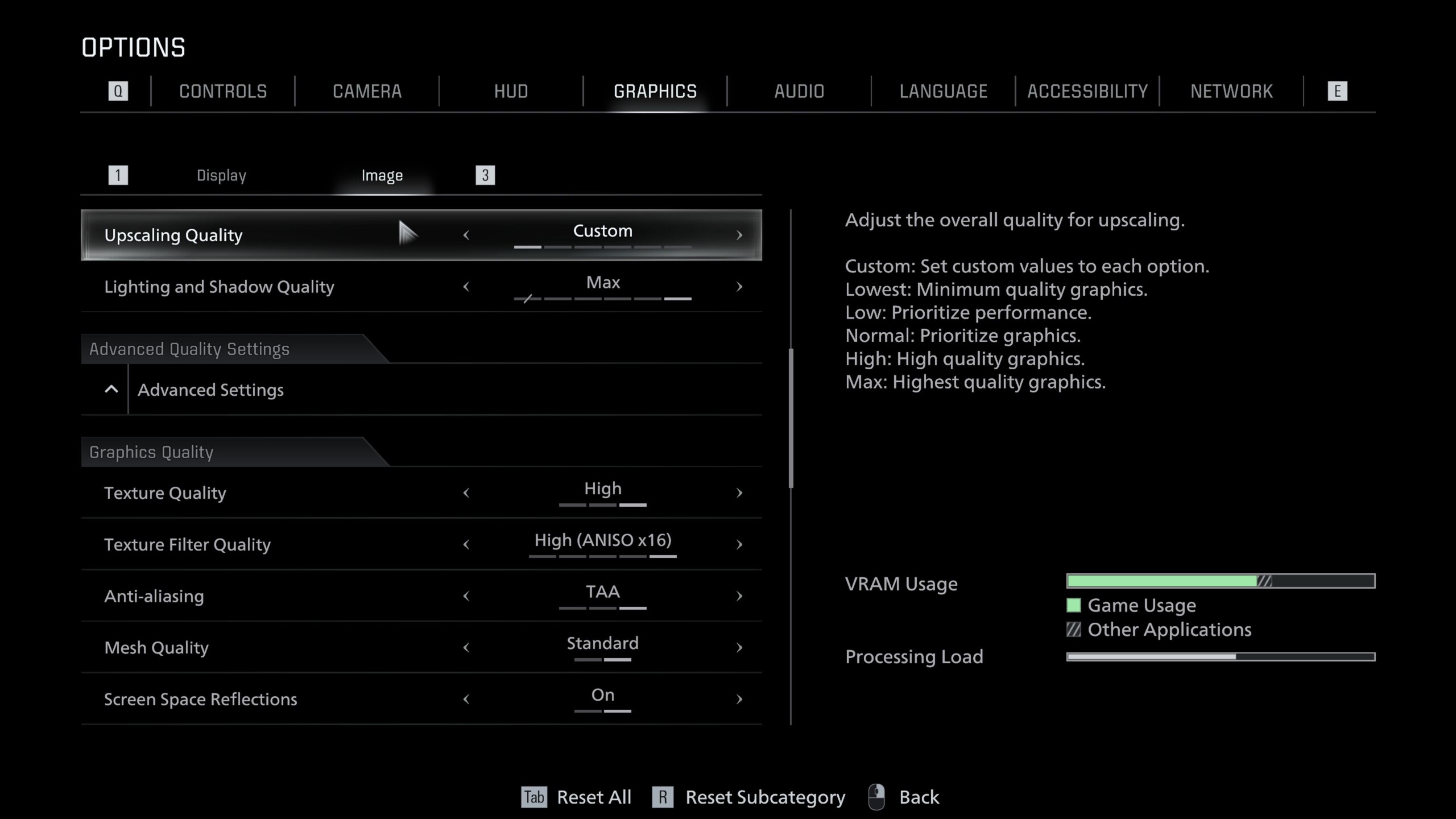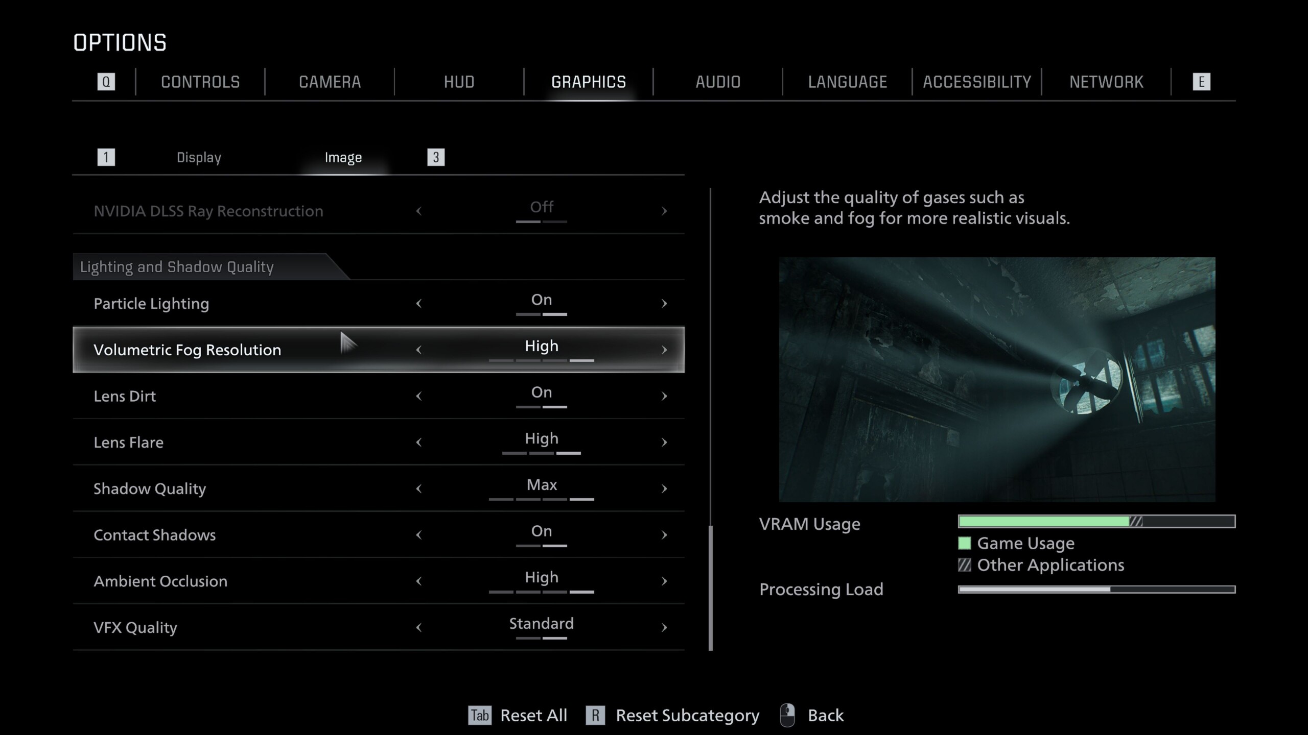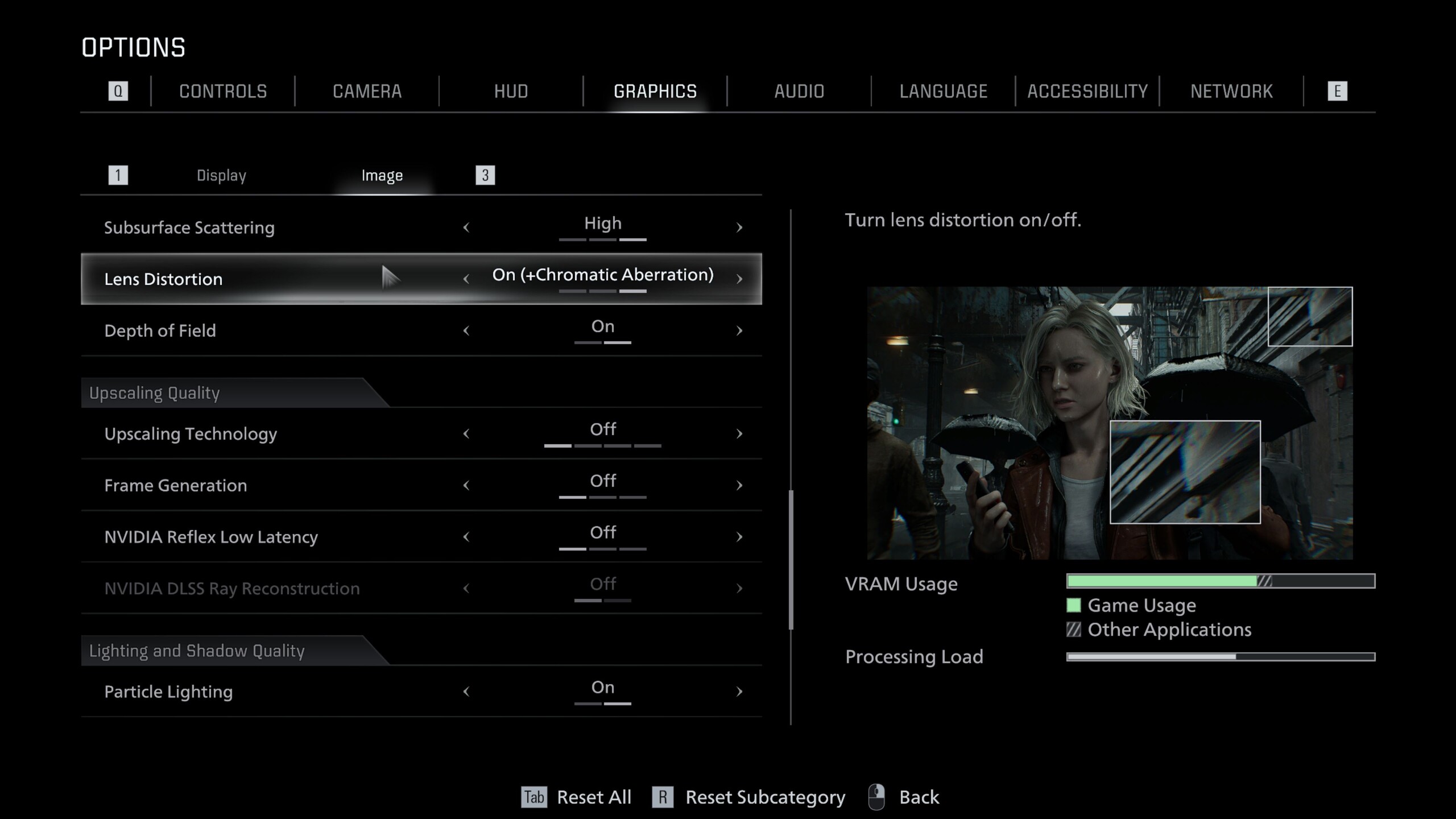 A Resident Evil Requiem a Capcom saját fejlesztésű RE Engine-jére épül, amely tele van modern funkciókkal. A rendkívül részletes grafikai menü a képernyőképeken látható módon a Display és Image fülekre oszlik. Nemcsak a felskálázási lehetőségeket tartalmazza, a DLSS, FSR és a képkocka generálás támogatásával, hanem a sugárkövetés és az útvonalkövetés kapcsolóit is.