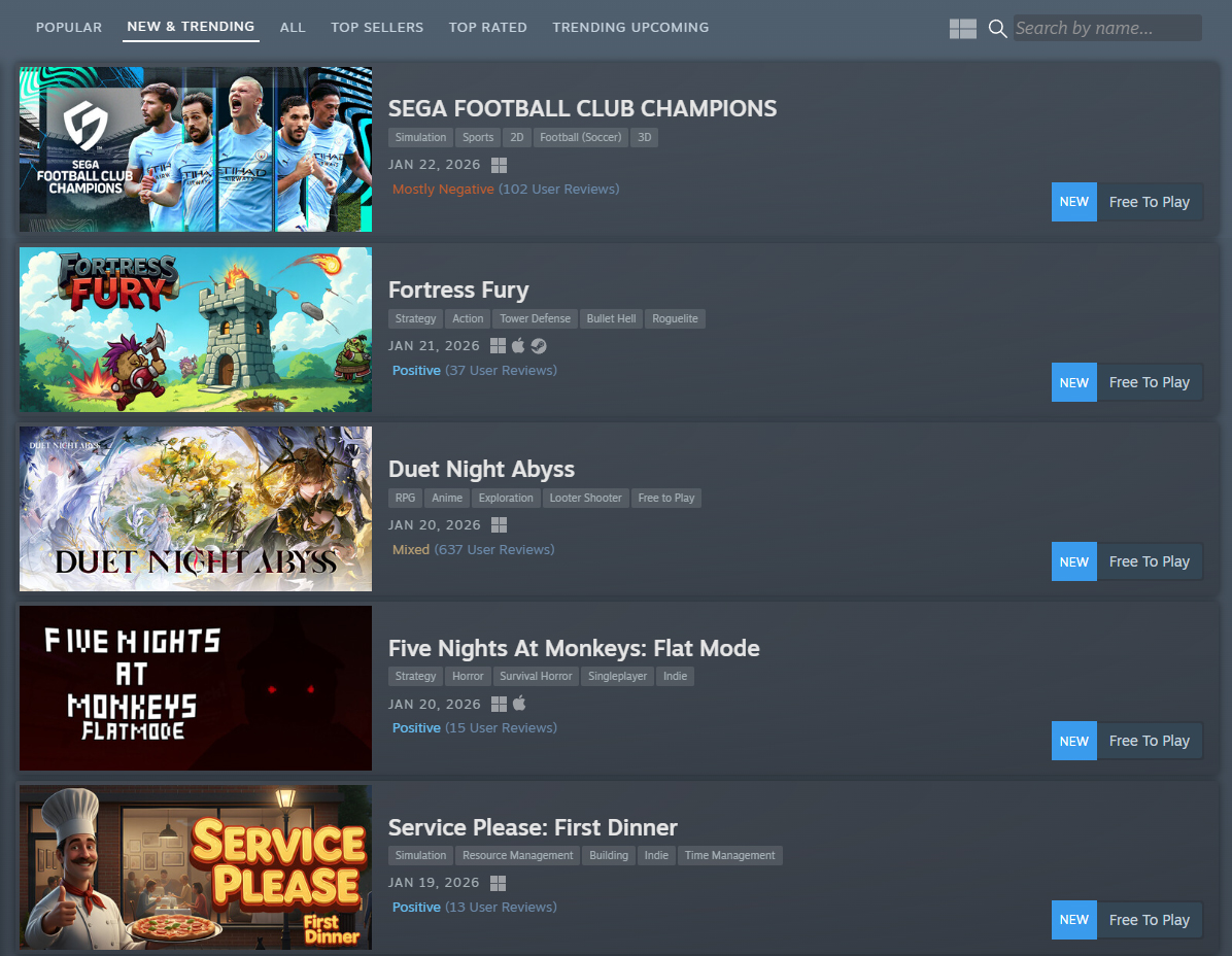 Bár a SEGA Football Club Champions gyorsan felkapaszkodott a Steam "New & Trending" listájára, a korai játékosok megnyeréséért küzd. Ez az új ingyenes játék jelenleg több mint 100 értékeléssel rendelkezik a oldalon, amelyek közül 20% pozitív, így tartja a "Többnyire negatív" összértékelést.