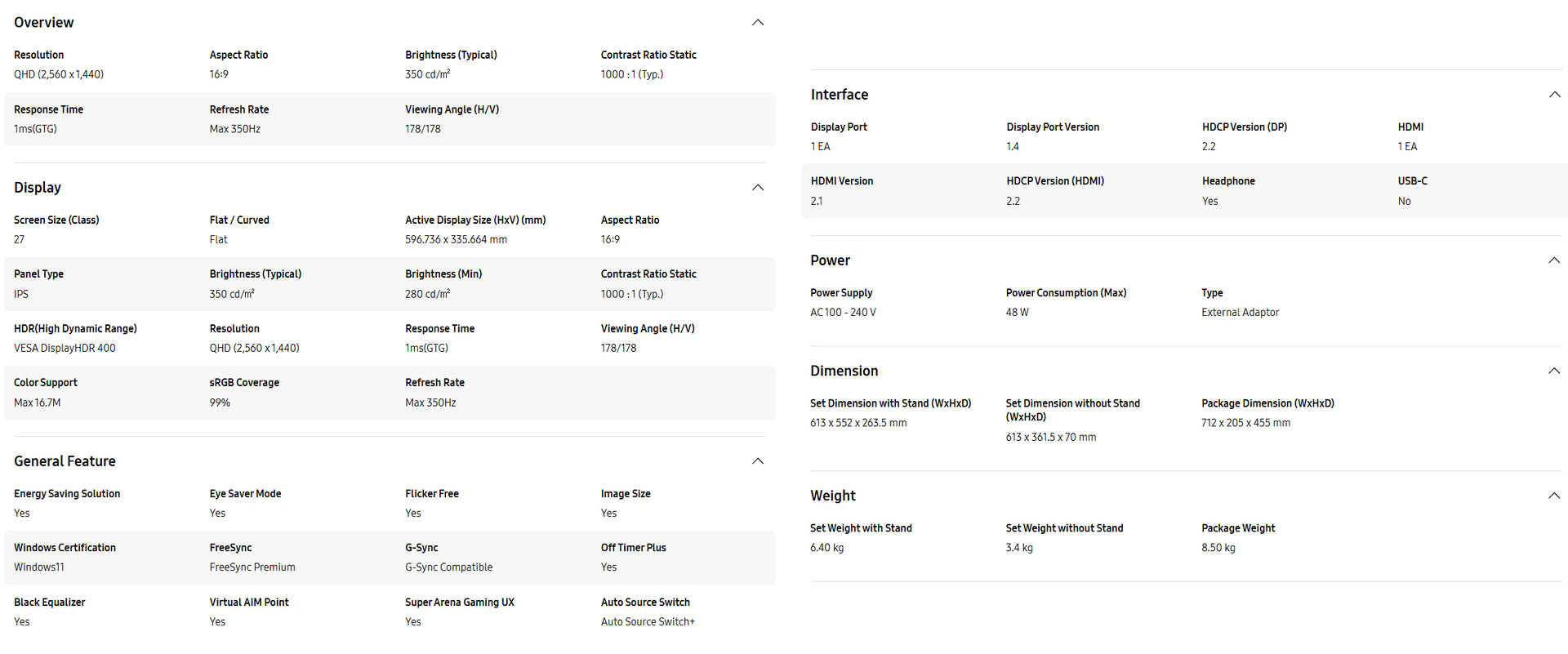 Ami a specifikációkat illeti, megegyezik a a kínai modellel. Konkrétan 27 hüvelykes Fast IPS panellel rendelkezik, 1440p felbontással. A kijelző egyik fő fénypontja a 350 Hz-es frissítési frekvencia. A névleges 1 ms-os GtG válaszidővel párosítva az Odyssey G60F-nek érzékeny élményt kell nyújtania.