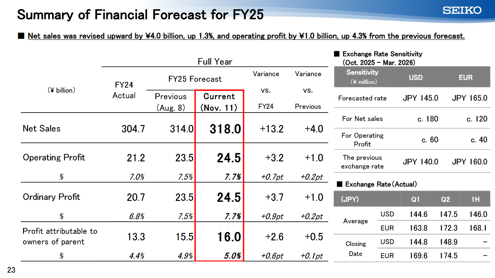 Az óra üzletág üzemi eredménye elérte a 15,4 milliárd jent, ami körülbelül 15%-os árrést jelent. Összehasonlításképpen, a svájci csoportok, mint például a Richemont és a Swatch Group hasonló időszakokban nagyjából 3%-os, illetve 4-5%-os árrést jelentettek.