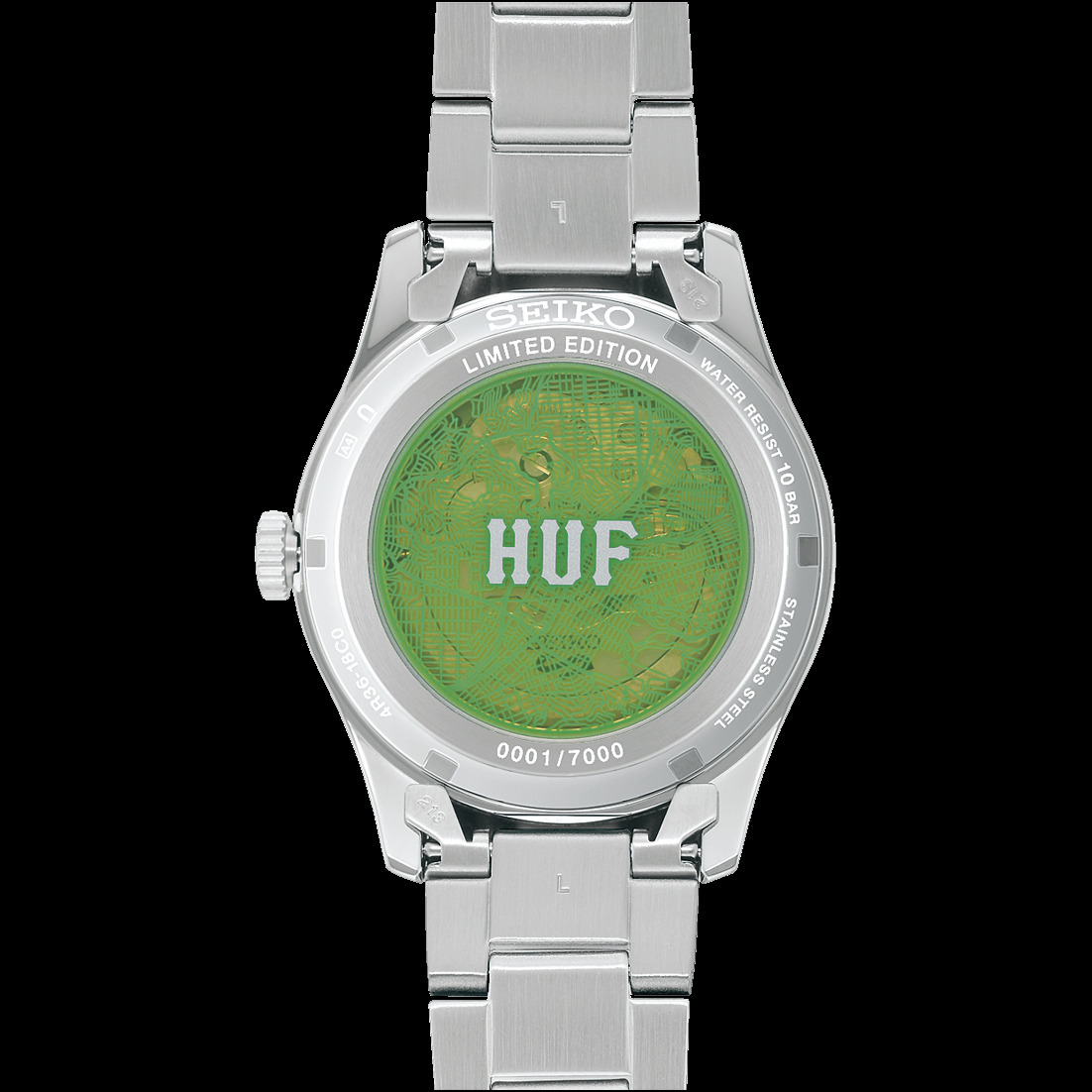 Az SRPM09-t a automata kaliber 4R36 hajtja, amely körülbelül 41 óra járástartalékkal rendelkezik, és támogatja a kézi felhúzást és a hackelést. A kiállítási tok hátlapja ugyanabban a jellegzetes zöld színben van színezve, mint a számlap, és egy San Francisco által inspirált grafikát tartalmaz, ahol a HUF márkát alapították. Az óra egy 20 mm-es fülszélességű rozsdamentes acél szíjjal van párosítva, és egy speciális HUF márkájú dobozban érkezik egy tisztítókendővel.